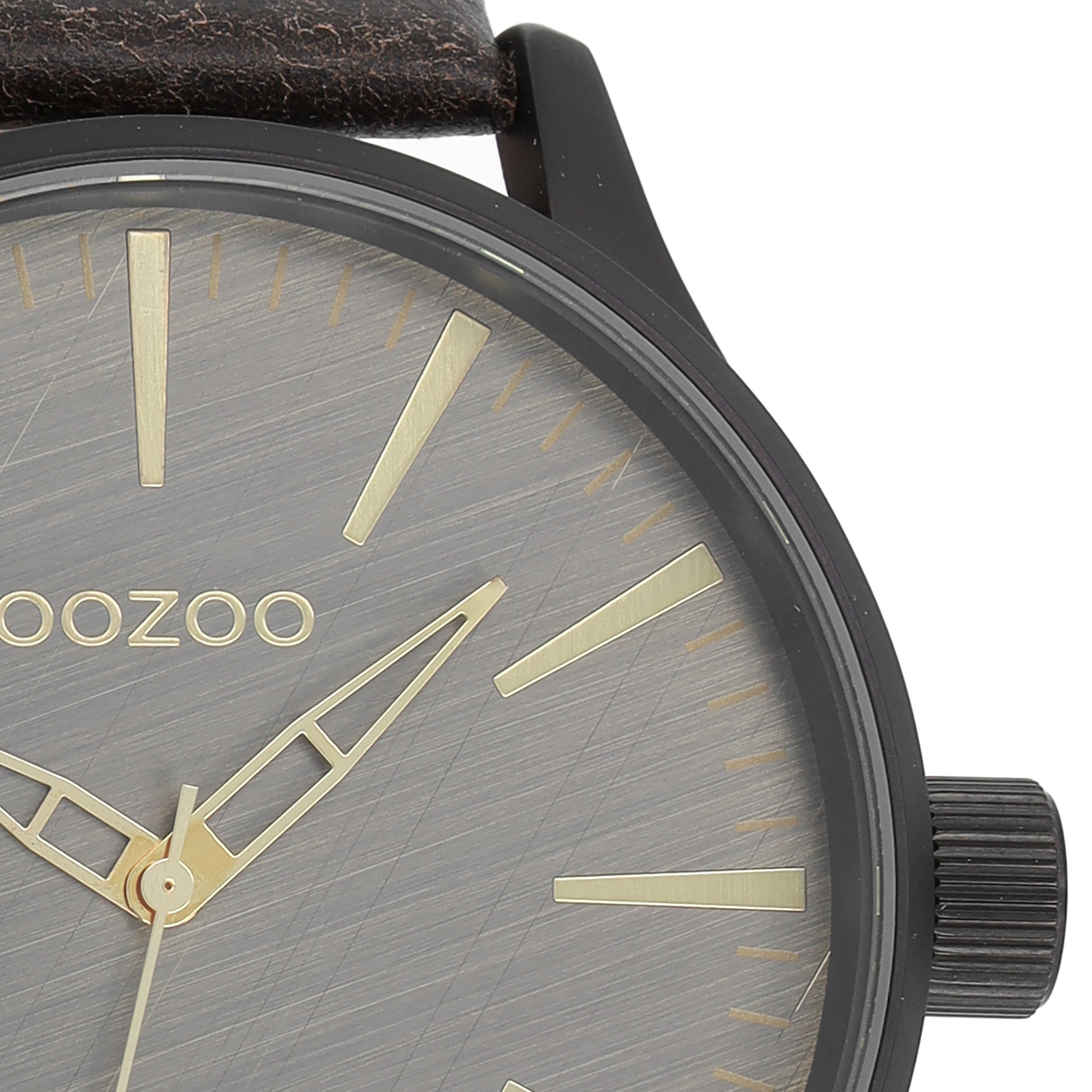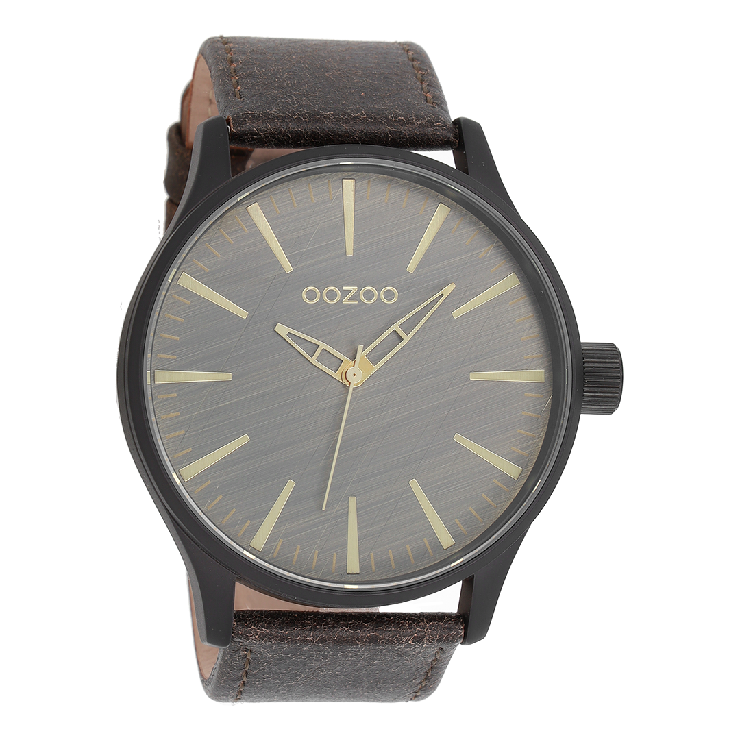 OOZOO Montre en noir avec bracelet en cuir en marron foncé - C7863