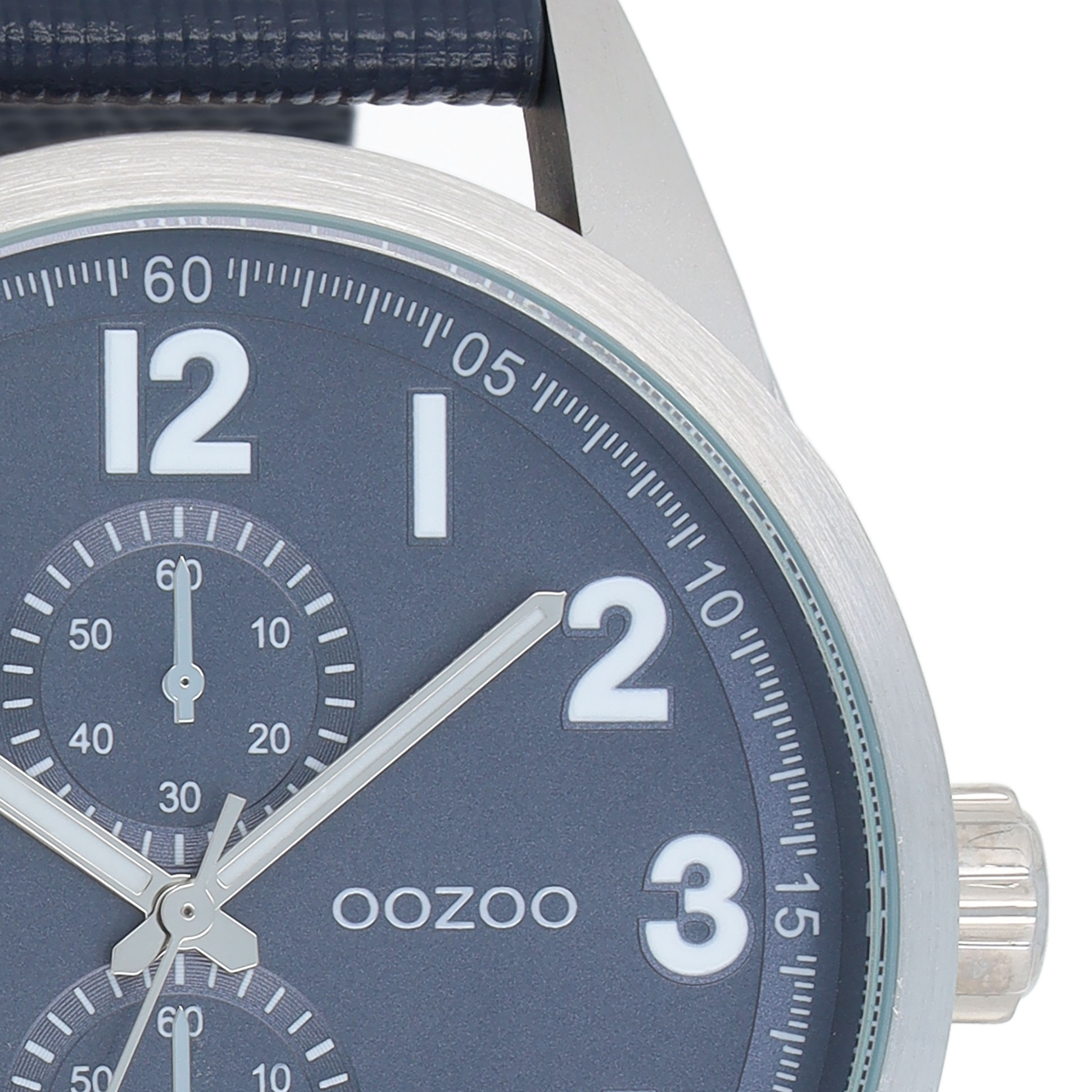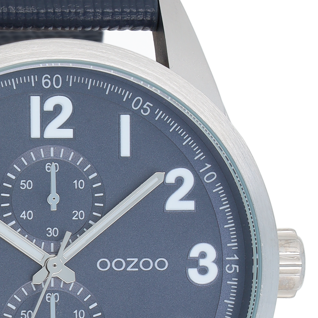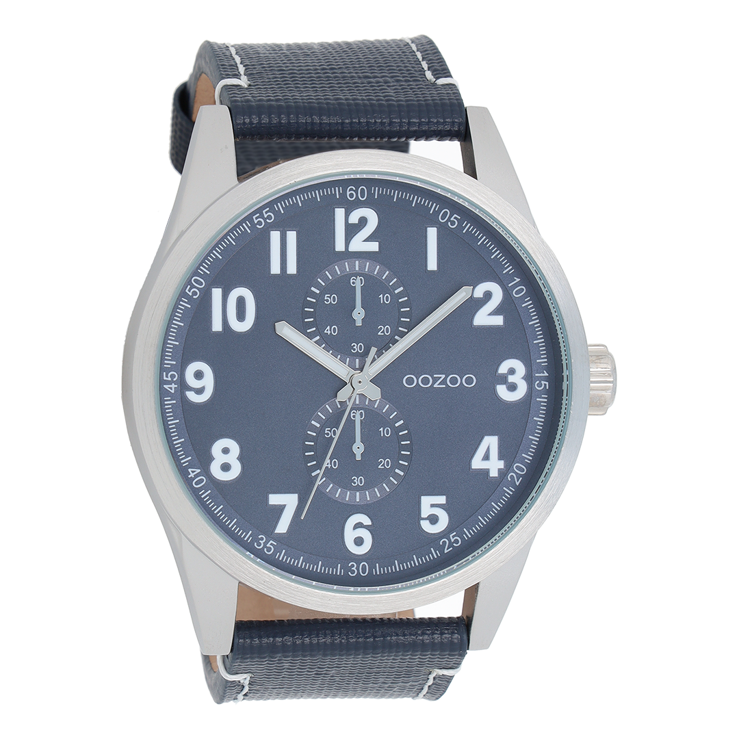 OOZOO Montre en couleur argent avec bracelet en cuir en bleu foncé - C8222