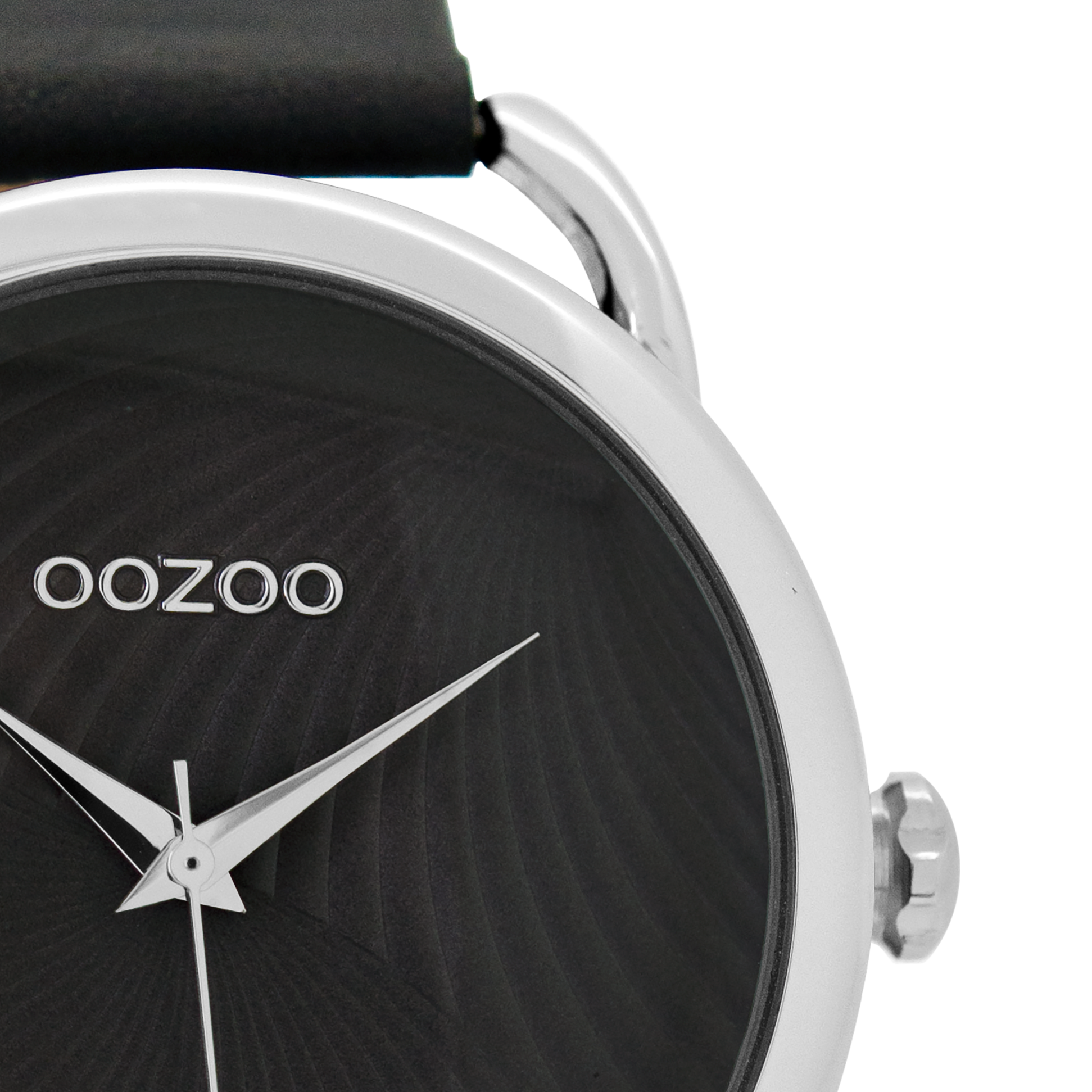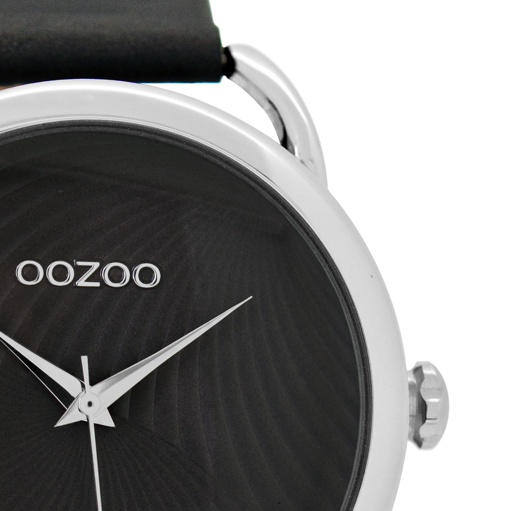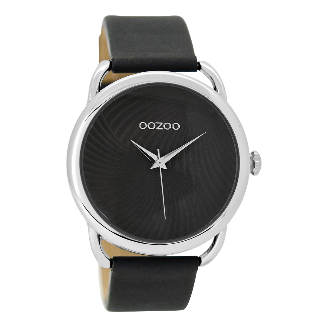 OOZOO Montre en couleur argent avec bracelet en cuir en gris éléphant - C9163