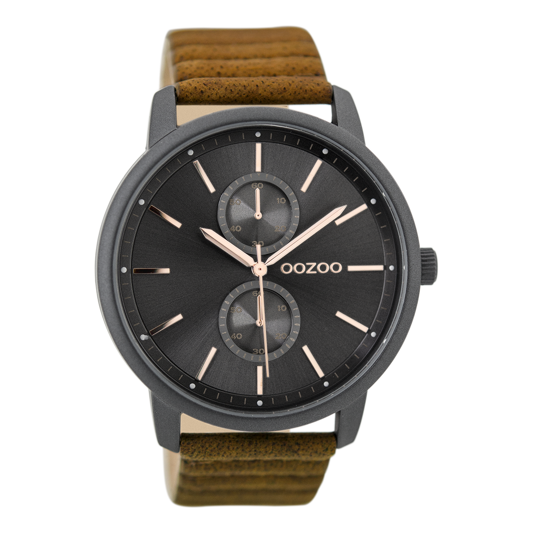 OOZOO Montre en noir avec bracelet en cuir en marron - C9452