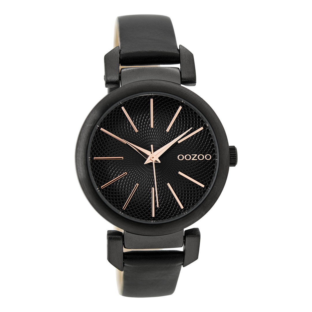 OOZOO Montre en noir avec bracelet en cuir en noir - C9489