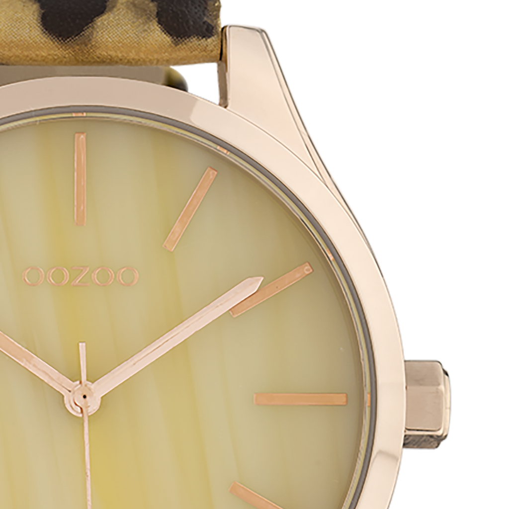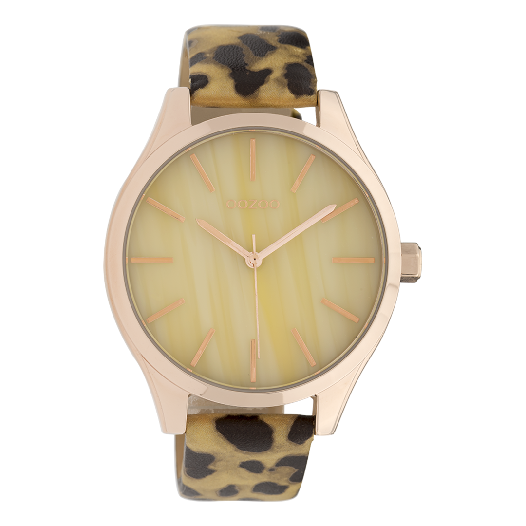 Distinguez-vous avec ce magnifique modèle femmes rond de la collection tendance OOZOO Timepieces. Cette nouvelle création (C9792) est enjolivée d’un bracelet en cuir noir/couleur or motif léopard et d’un boîtier tendance métal couleur or rose de 42 mm de diamètre. Faites sensation avec ce cadran jaune ccouleur orne et un index couleur or rose rayures et des aiguilles asscouleur orti. Cette montre est un incontournable de votre garde-robe et possède un verre minéral, une plaque arrière en acier inoxydable et est sans danger pour le nickel. Cet montre est équipée un mécanisme japonais 2 et bénéficient d’une garantie de deux ans (voir section 3 des conditions de remboursement, expédition & garantie).