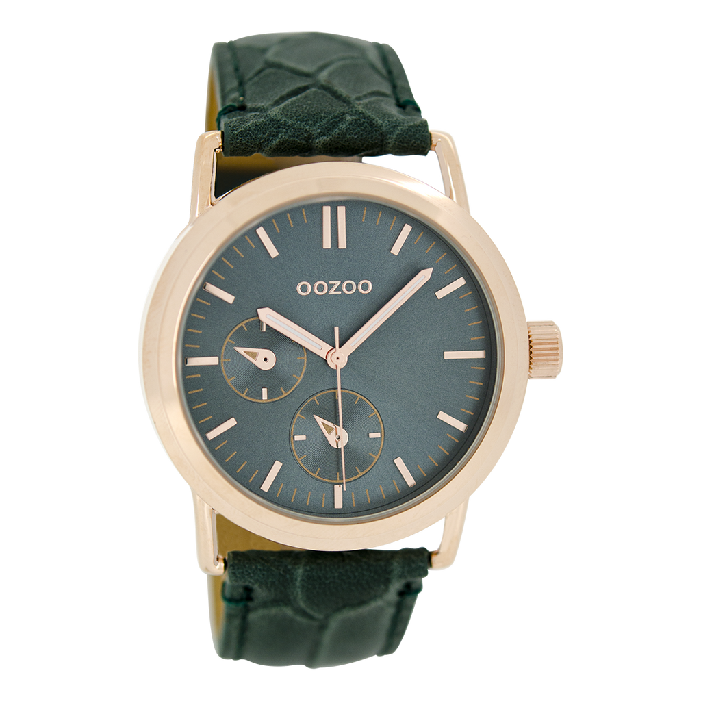 Rose gold coloured OOZOO watch with aqua green leather strap - C6543