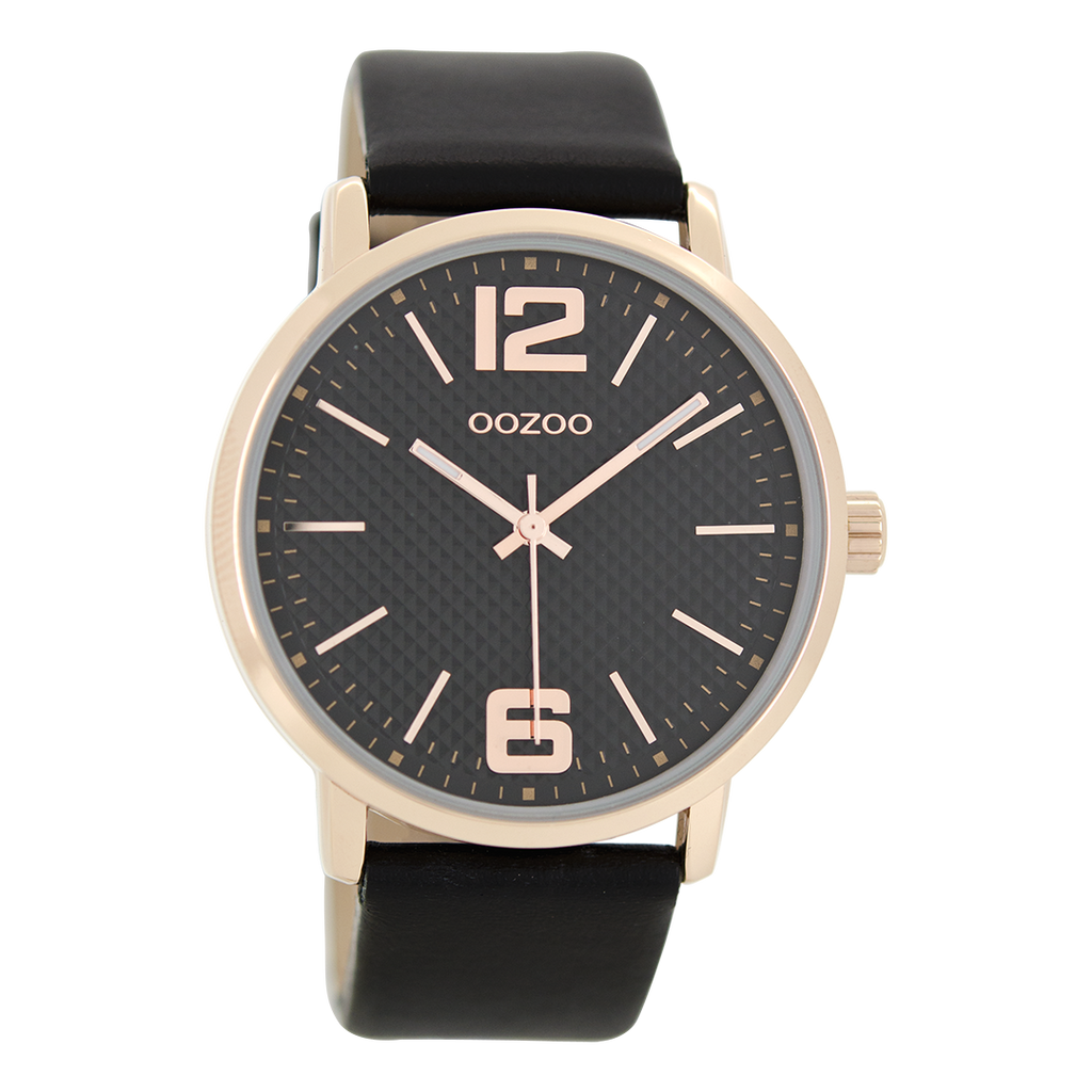 Rose gold coloured OOZOO watch with black leather strap - C6574