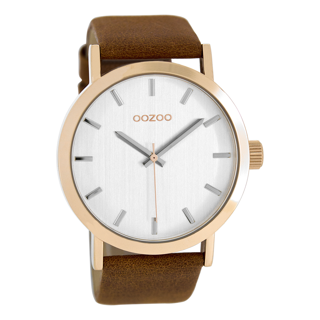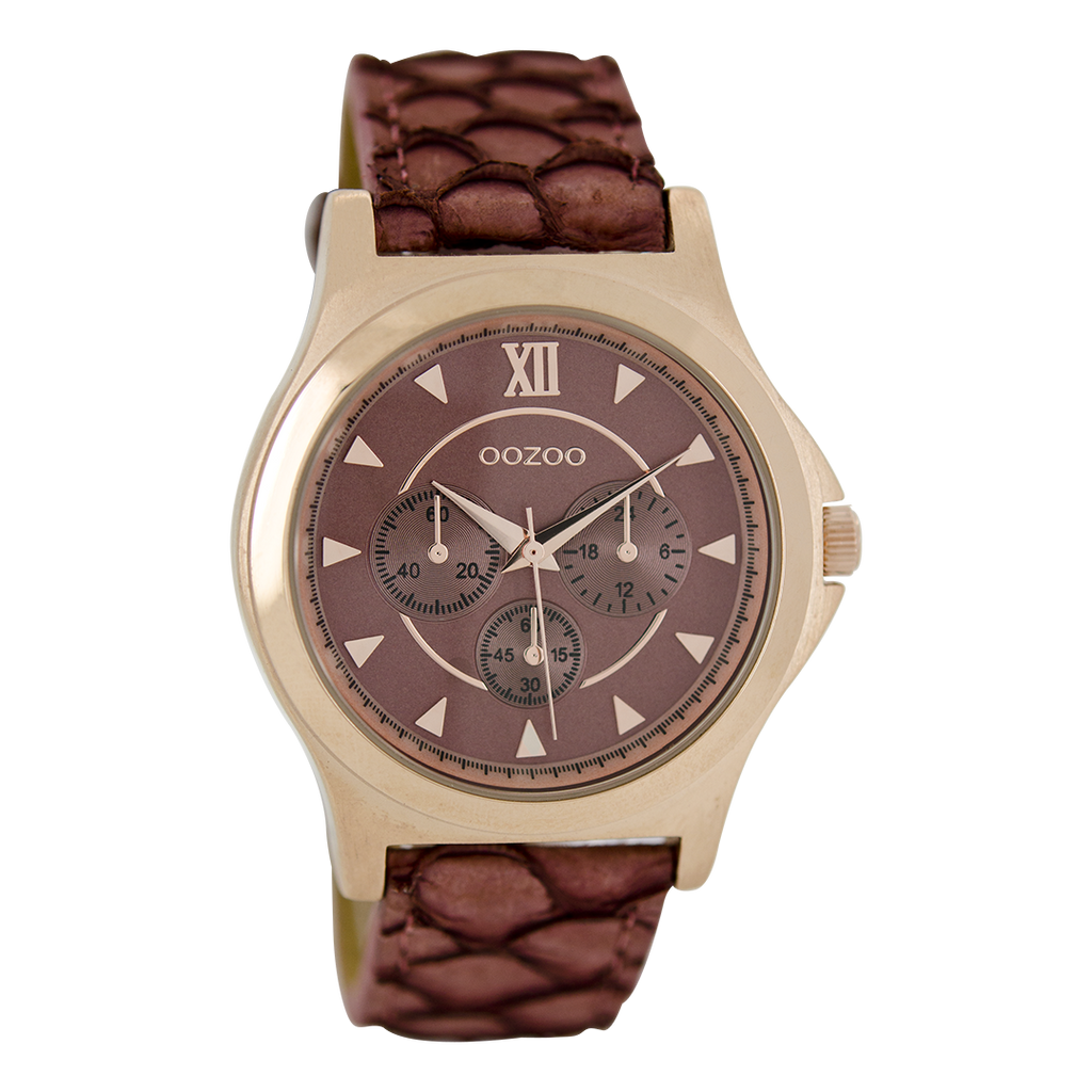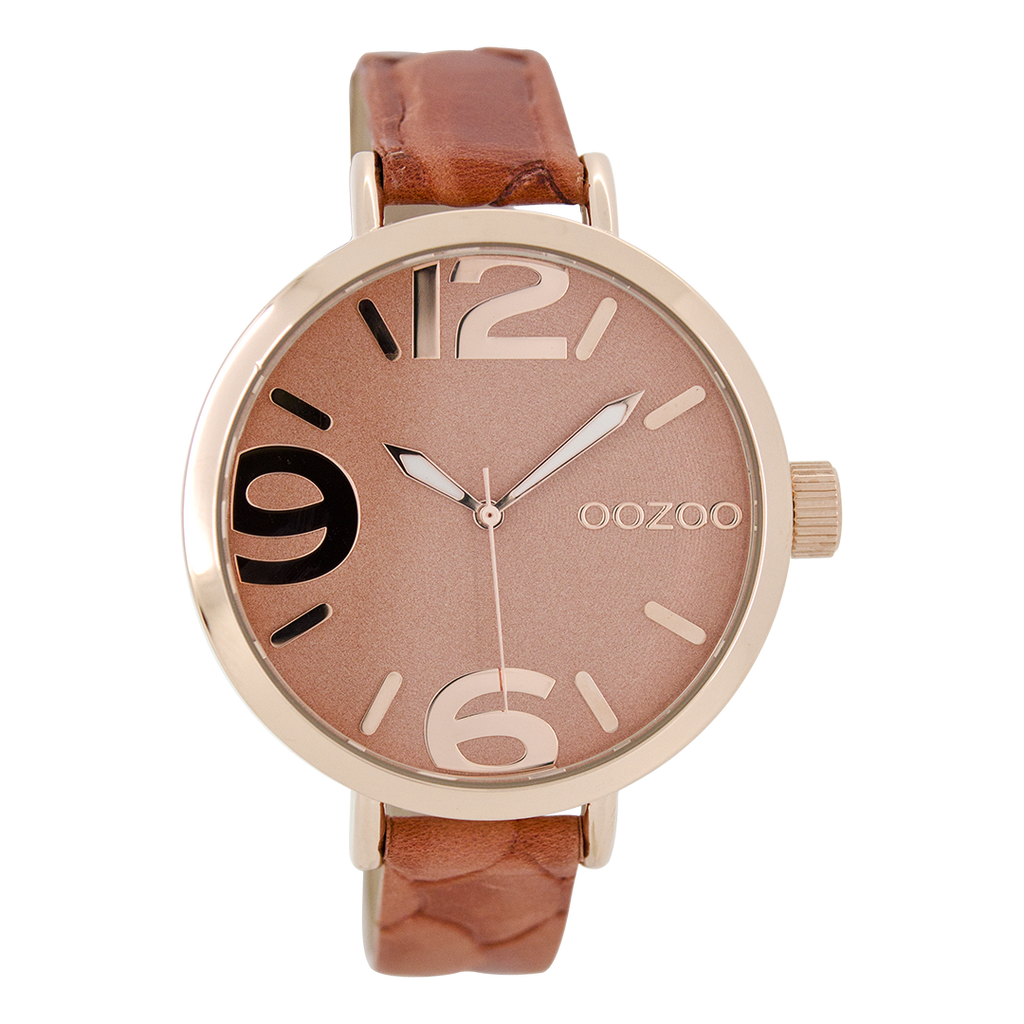 Rose gold coloured OOZOO watch with brown leather strap - C8590