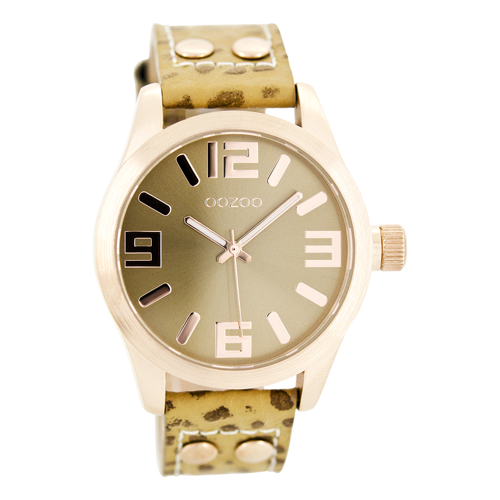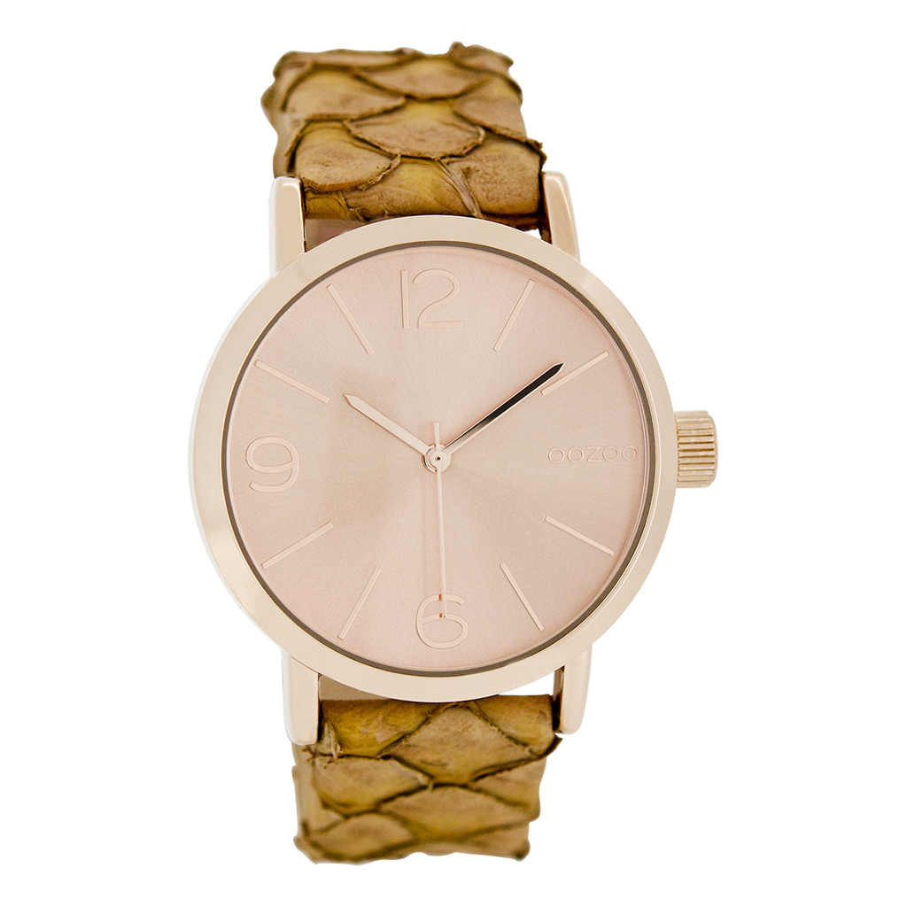 Rose gold coloured OOZOO watch with camel leather strap - C8015