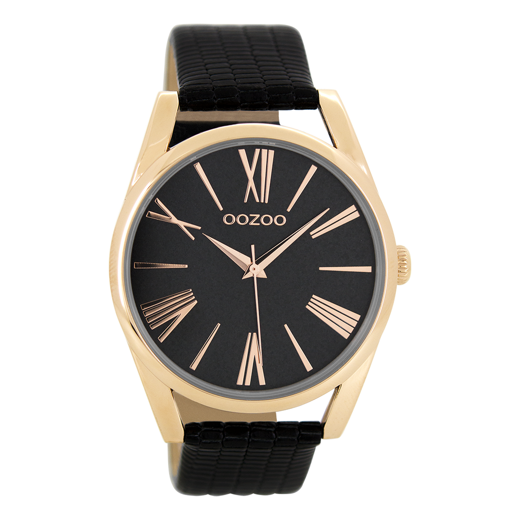 Rose gold coloured OOZOO watch with black leather strap - C9724