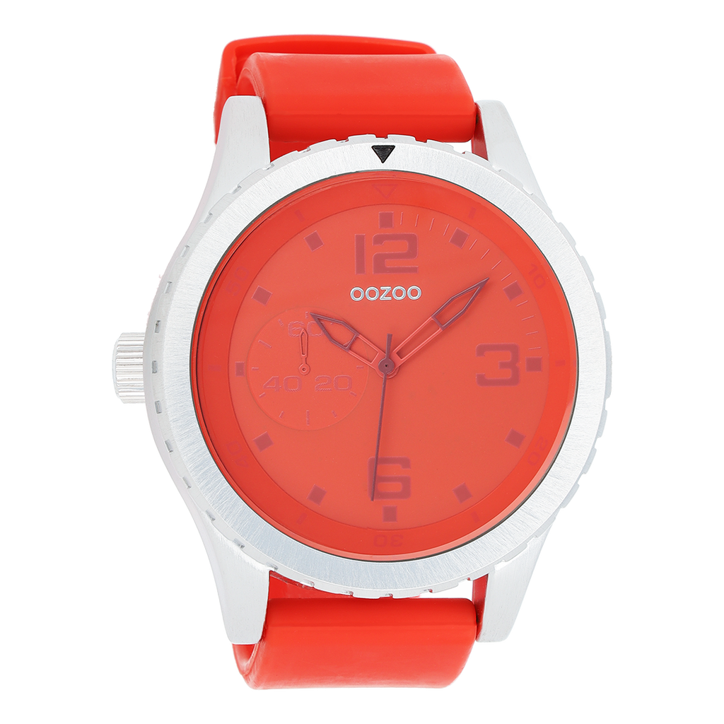 Silver coloured OOZOO watch with red rubber strap - C3670