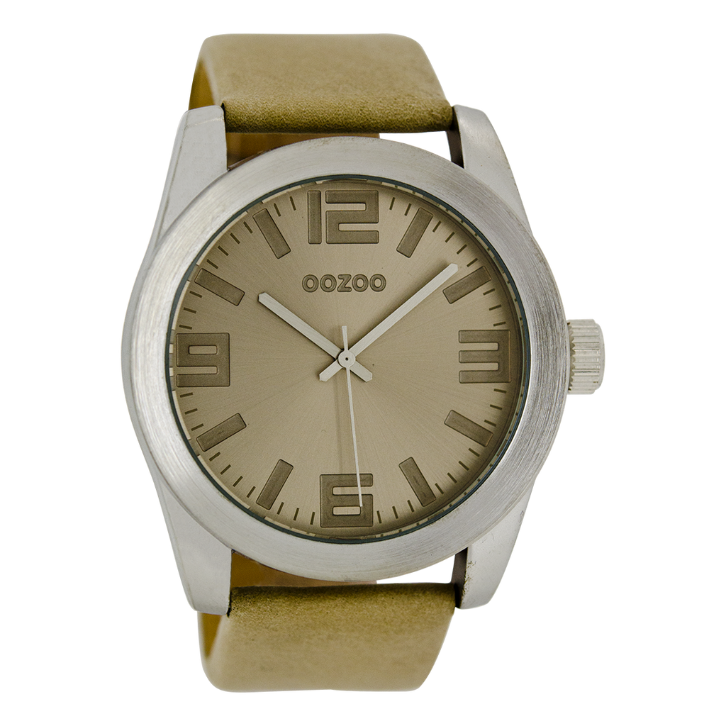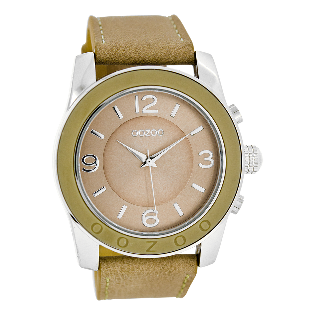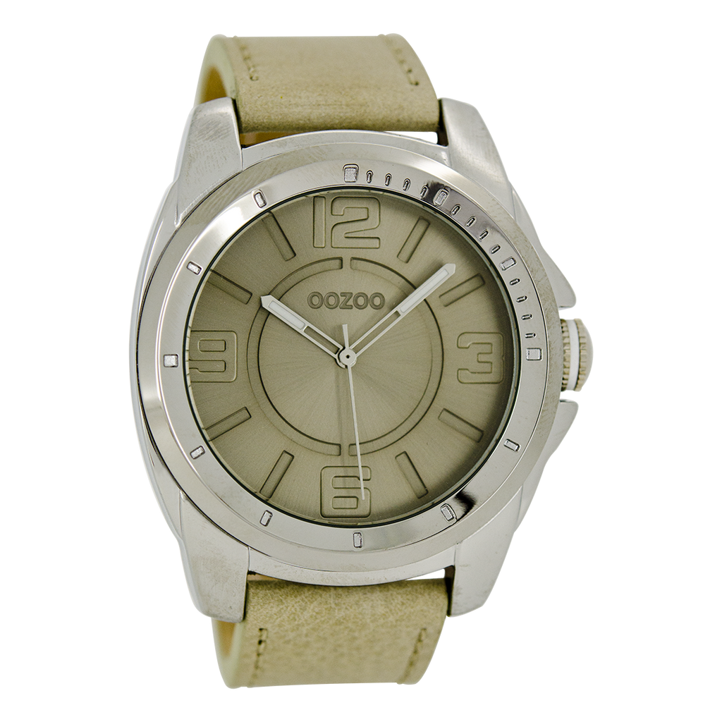 Silver coloured OOZOO watch with sand leather strap - C6106