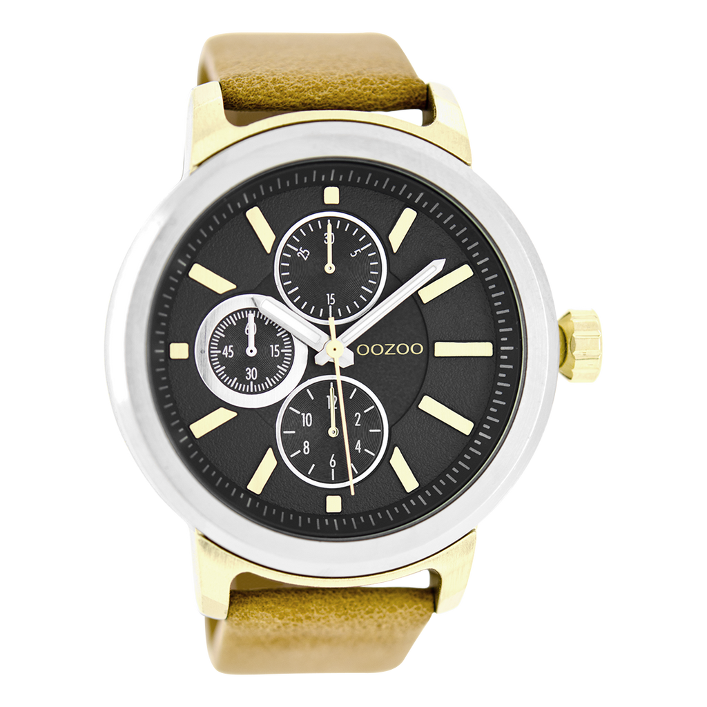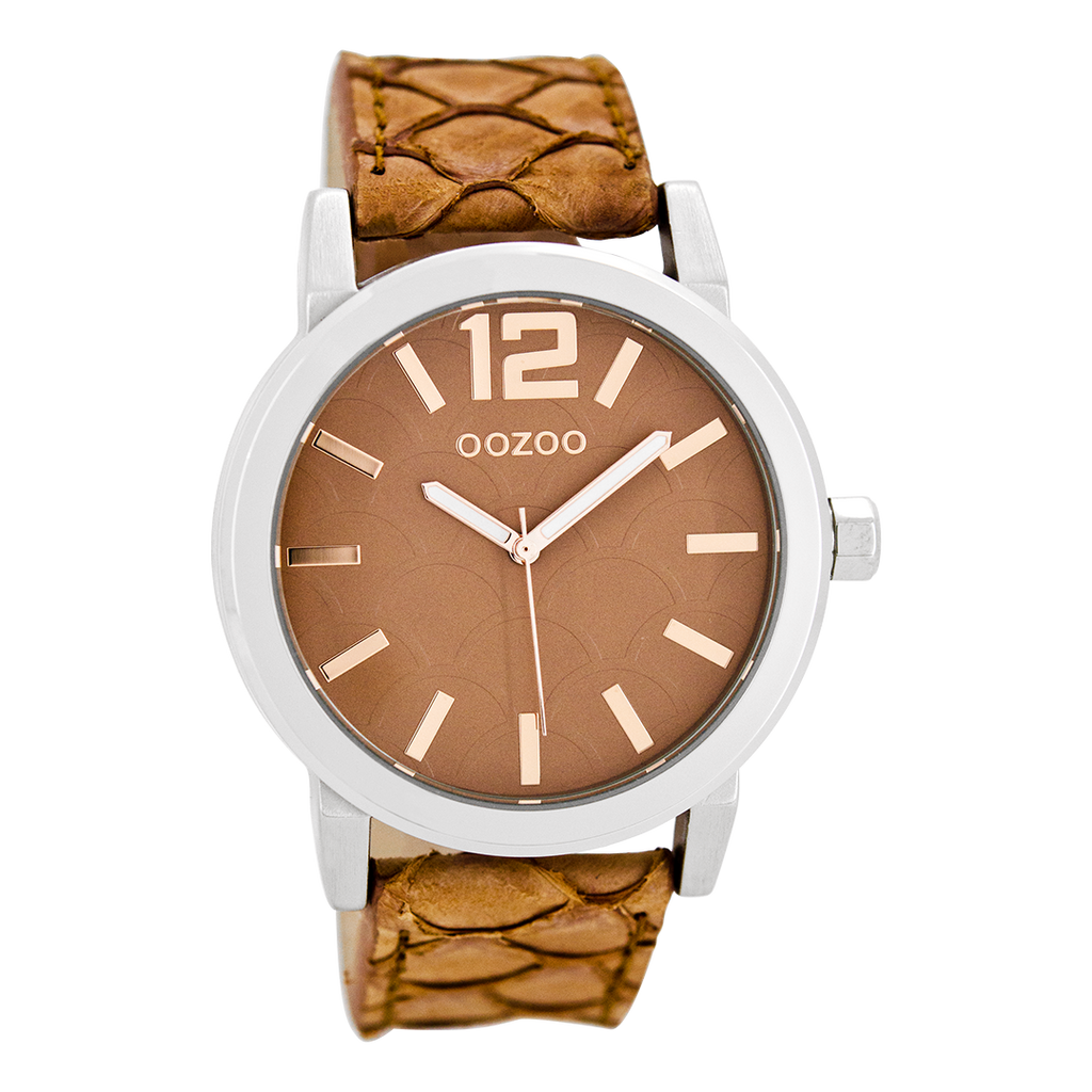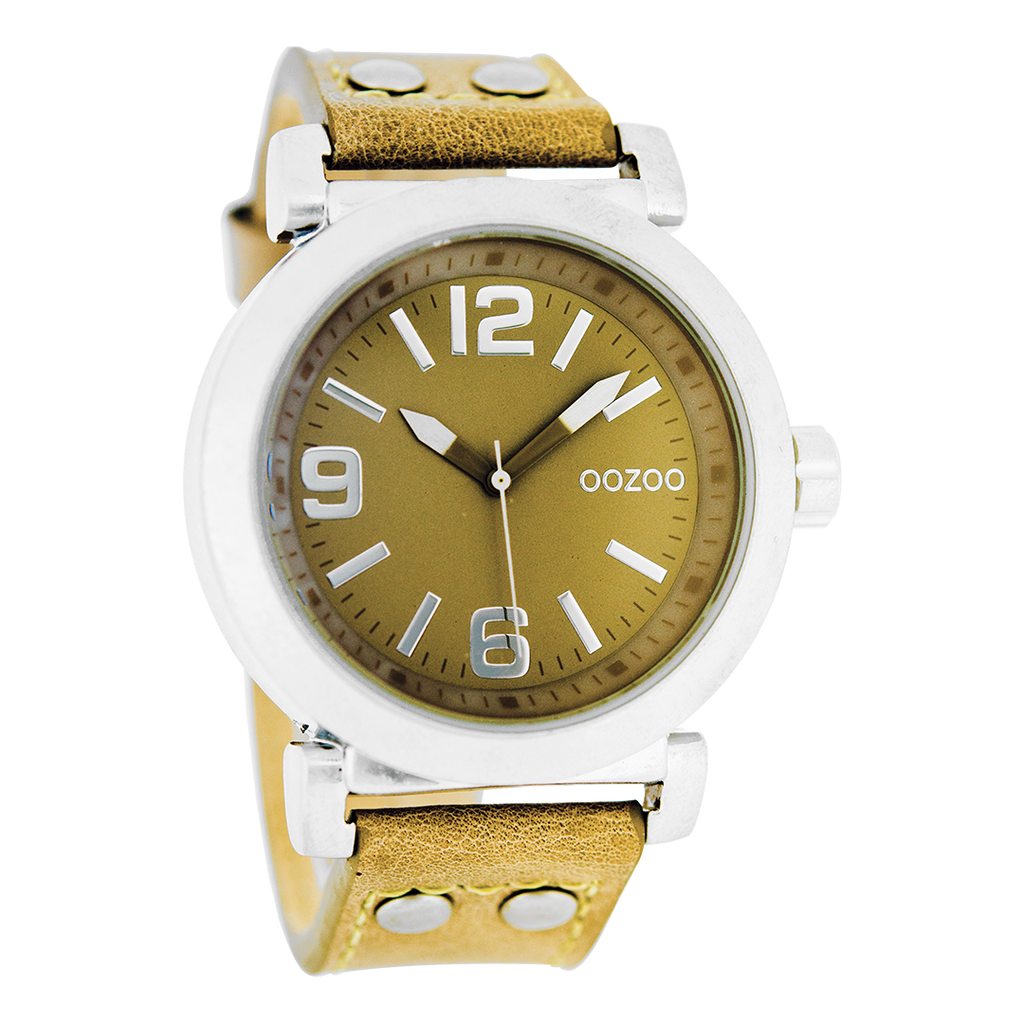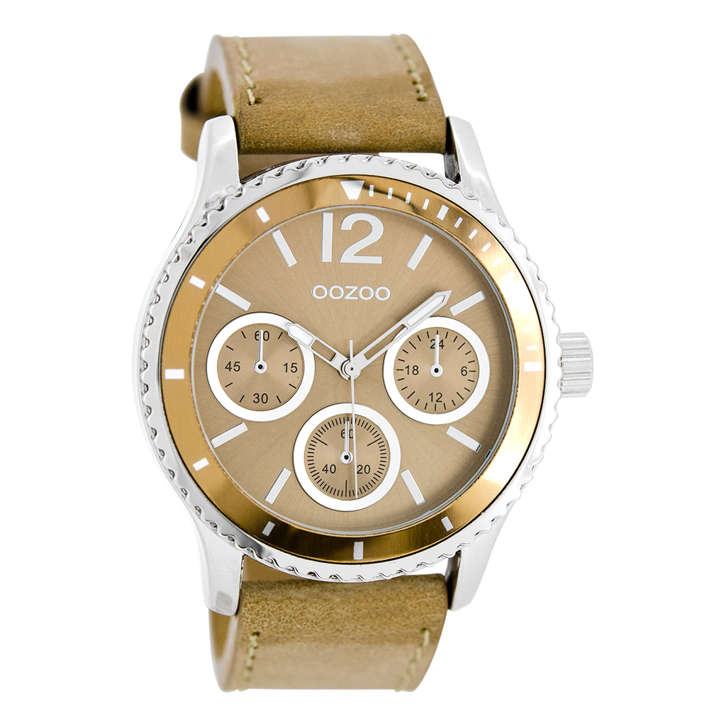 Silver coloured OOZOO watch with sand leather strap - C6106