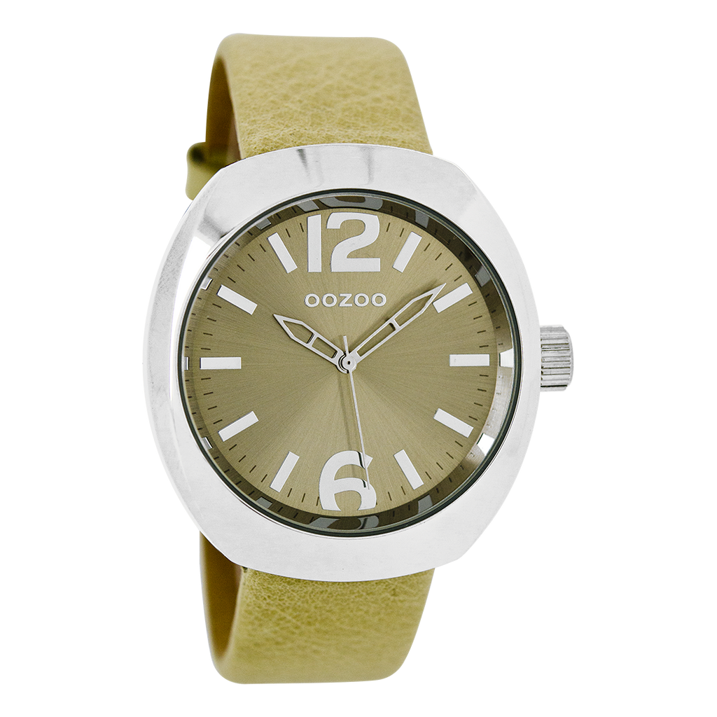 Silver coloured OOZOO watch with olive leather strap - C20326