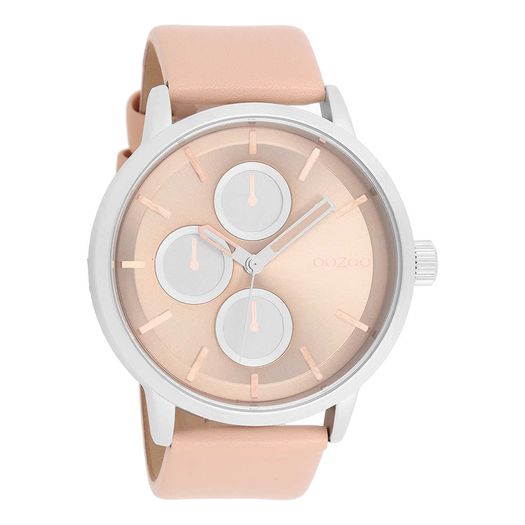 Silver coloured OOZOO watch with pink shell coloured leather strap - C11295