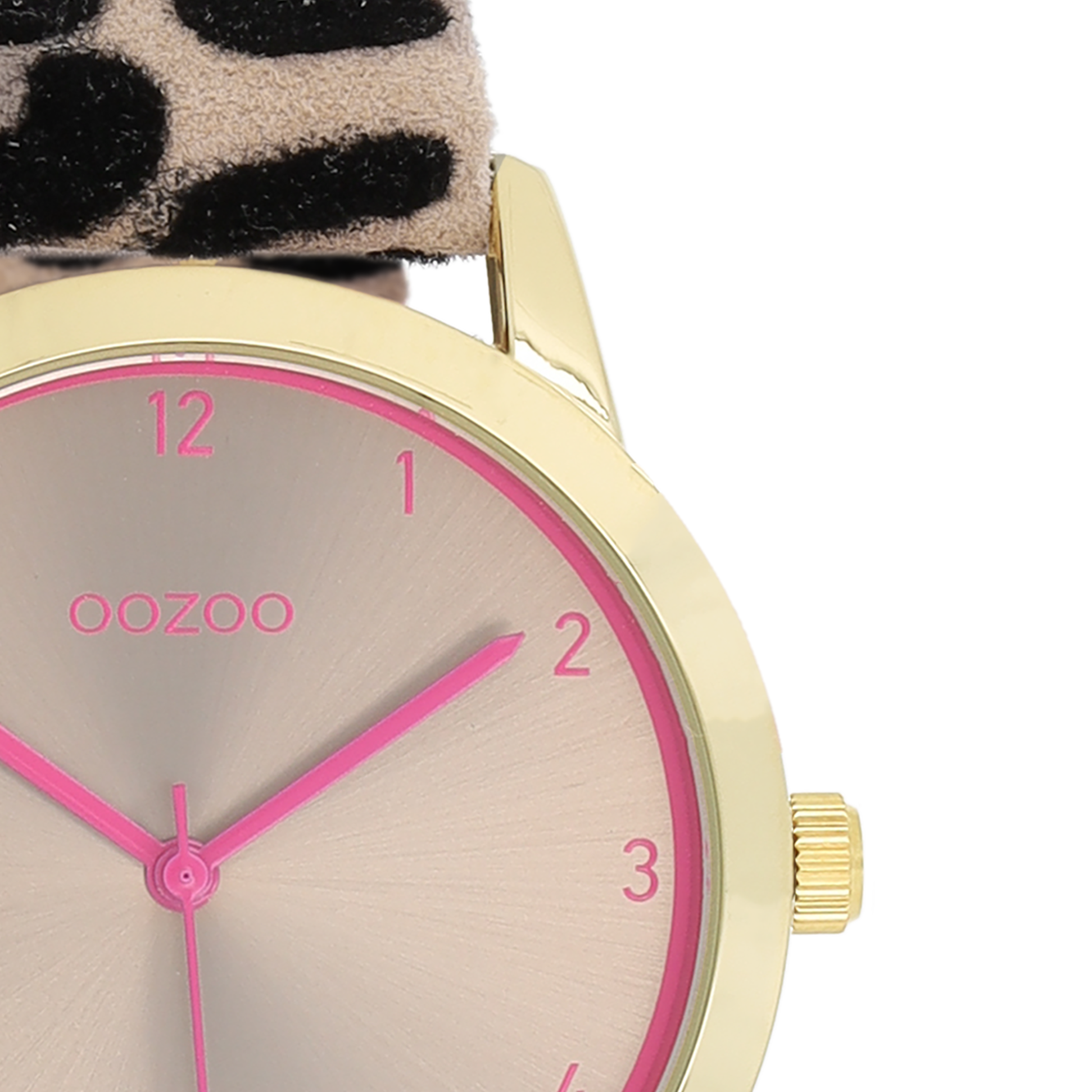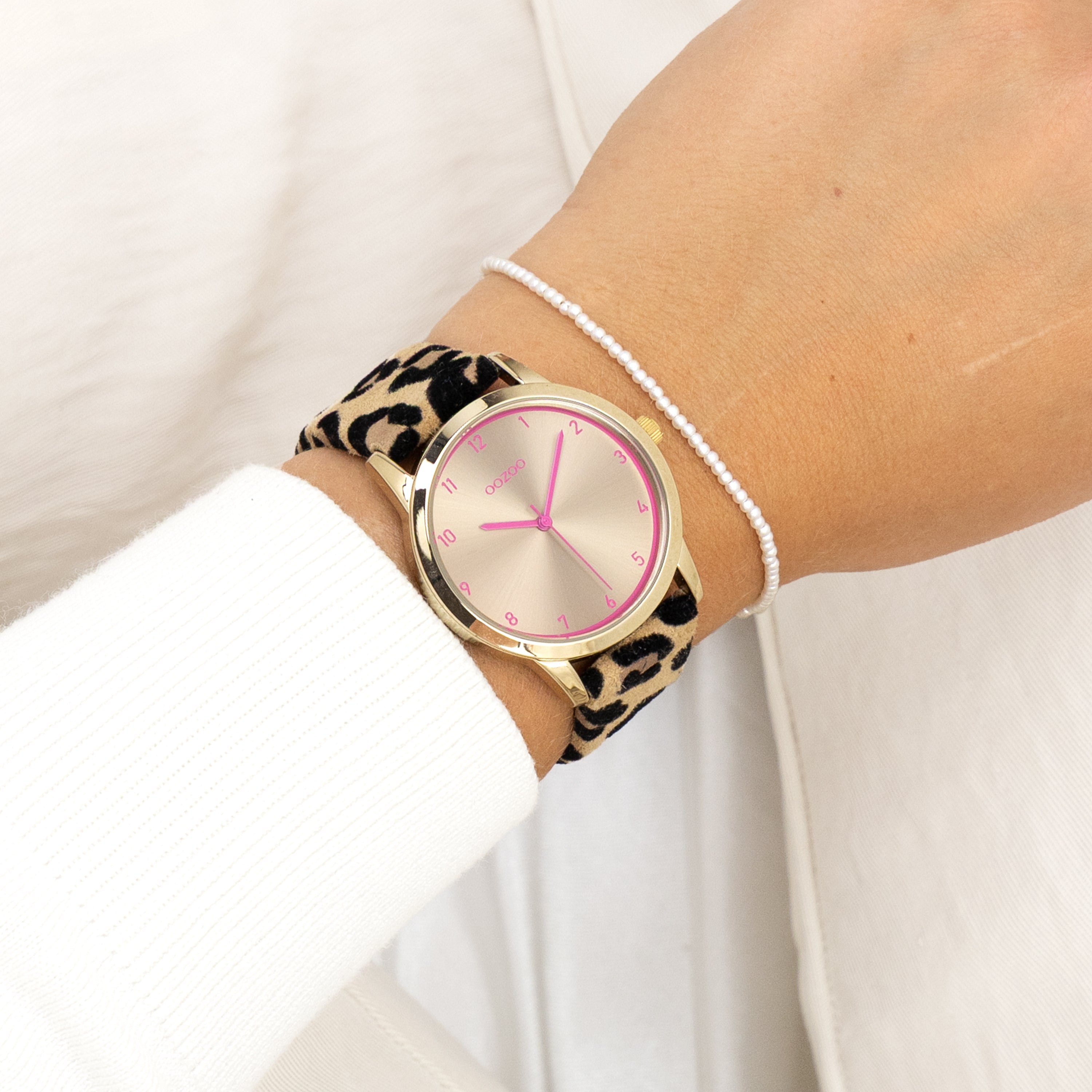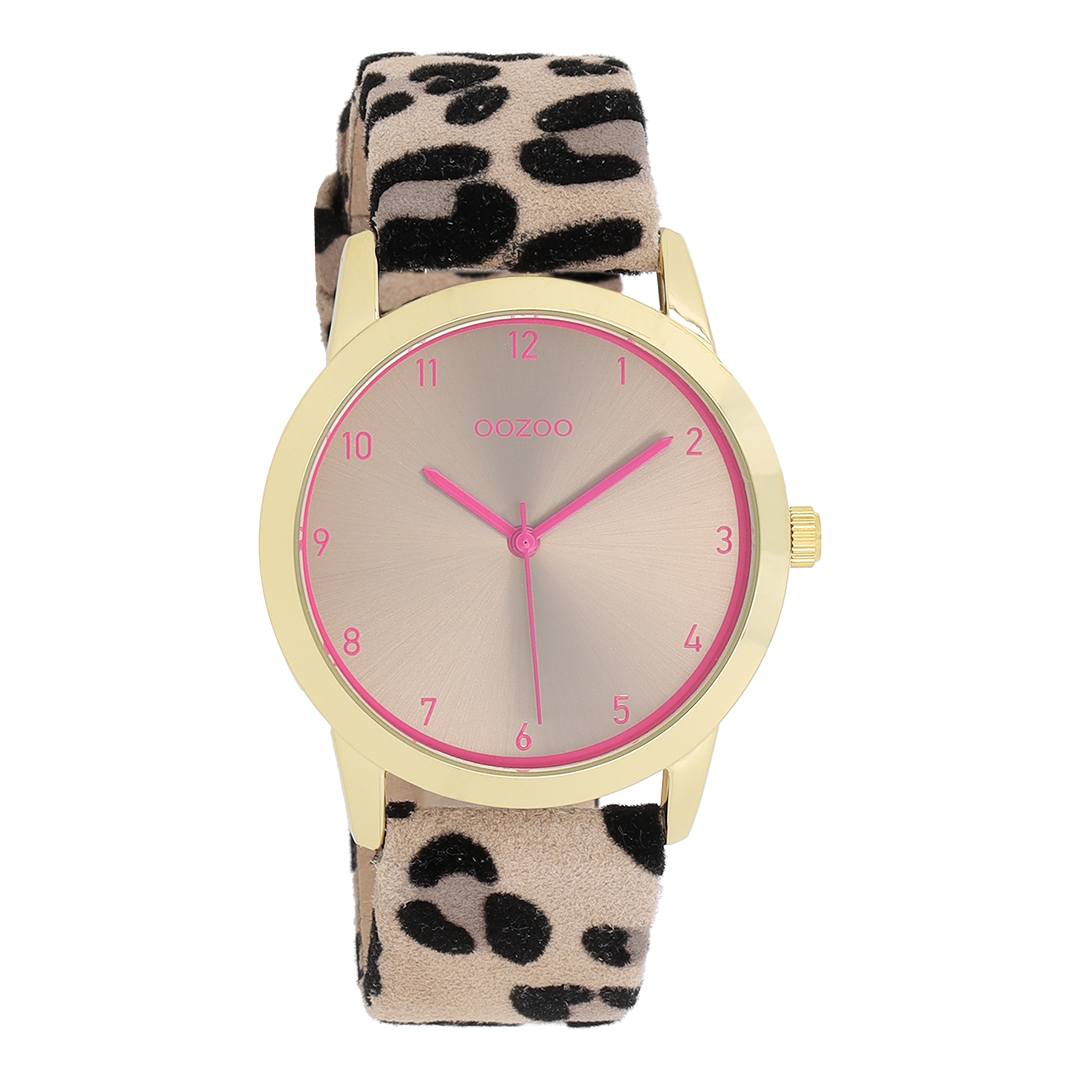Stand out with this beautiful round ladies design from the trendy OOZOO Timepieces collection. The C11374 has a leopard print brown leather strap and 38 mm gold coloured metal watch case. You are making quite the fashion statement with this taupe sunray dial, fluo pink numbers digits and matching hands. This essential watch for your wardrobe has a mineral glass, stainless steel backplate and is nickel safe. This watch has a 2ATM Japanese movement and is covered by a 2 year warranty (see section 3 of our Refund, shipping & warranty policy).