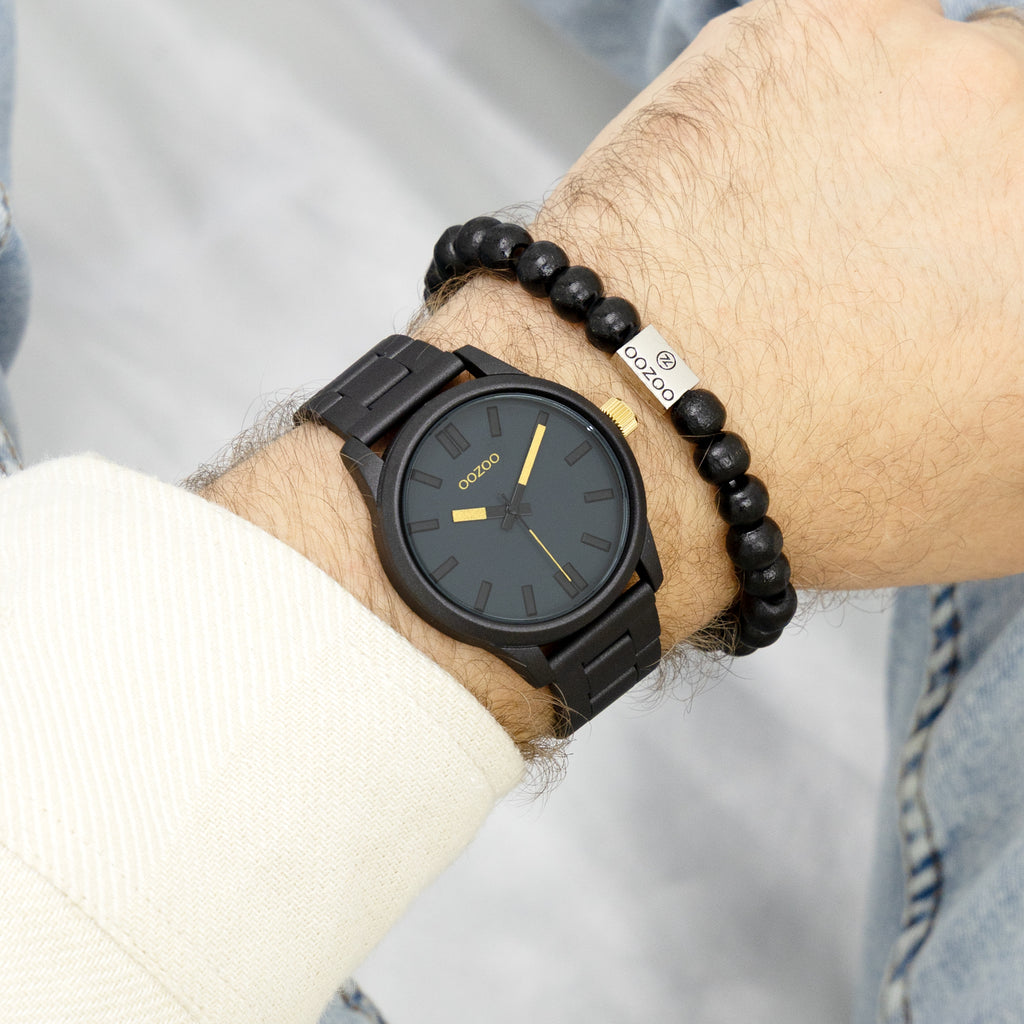 Black OOZOO watch with stainless steel bracelet - C11618