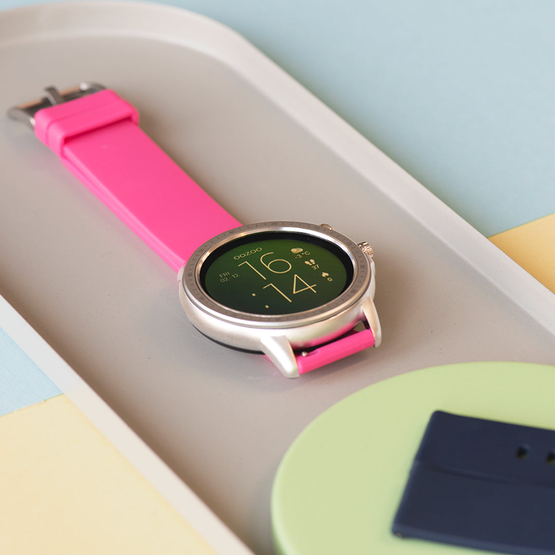 Diventa intelligente con noi! Questo smartwatch unisex da OOZOOLa collezione digitale ha una cassa di orologio rotonda. La Q00314 è uno dei nostri disegni più eleganti nel nostro OOZOO Collezione di smartwatch con la sua custodia per orologi in metallo color argento da 45 mm. Questo accessorio essenziale ha un bellissimo cinturino in gomma rosa di lampone opaco con chiusura. Questo smartwatch ha diversi stili di digitale colorato OOZOO Discuti per scegliere o creare la tua creazione unica per il suo touchscreen completo. Il vetro minerale si trova in una custodia di orologio spessa 11,4 mm e ha una piastra di plastica ed è sicuro in nichel. Un caricabatterie è incluso in questo prodotto. Questo smartwatch è certificato IP67 ed è coperto da una garanzia di 2 anni (vedere la sezione 3 della nostra politica di rimborso, spedizione e garanzia).