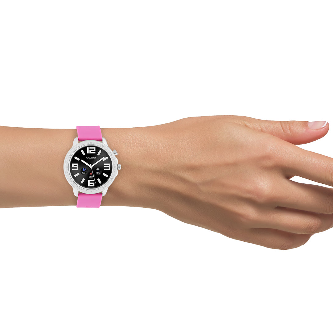 Colorato d'argento OOZOO Smartwatch con cinghia di gomma rosa di lampone - Q00314