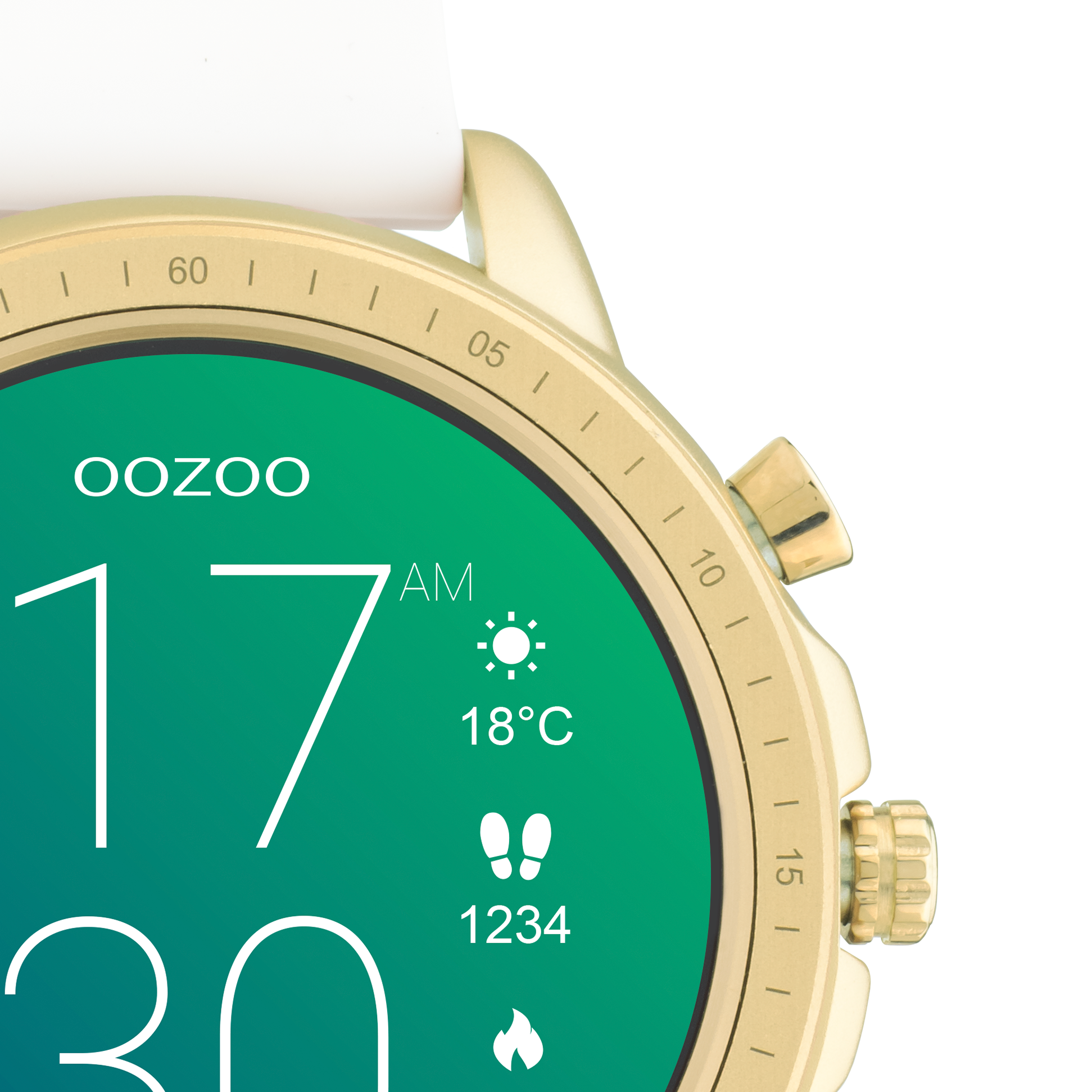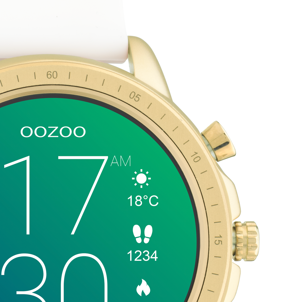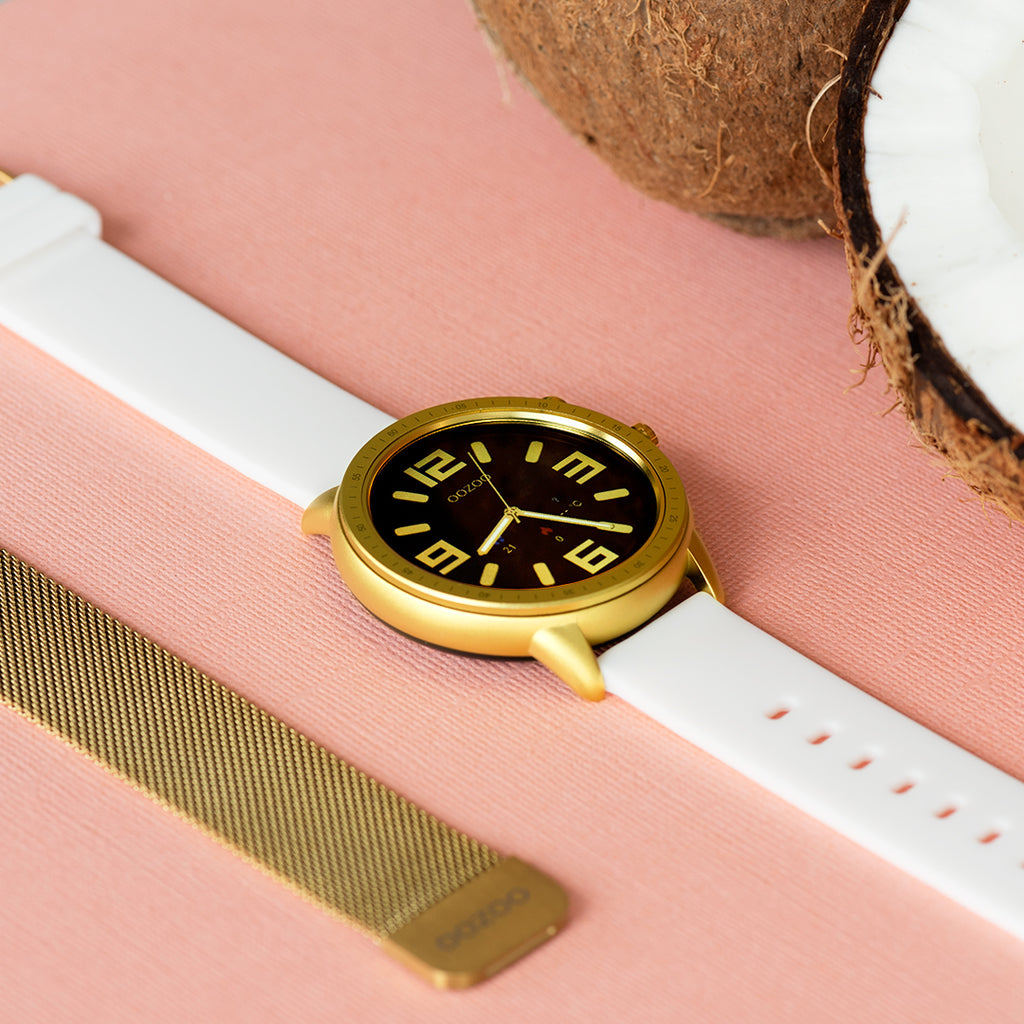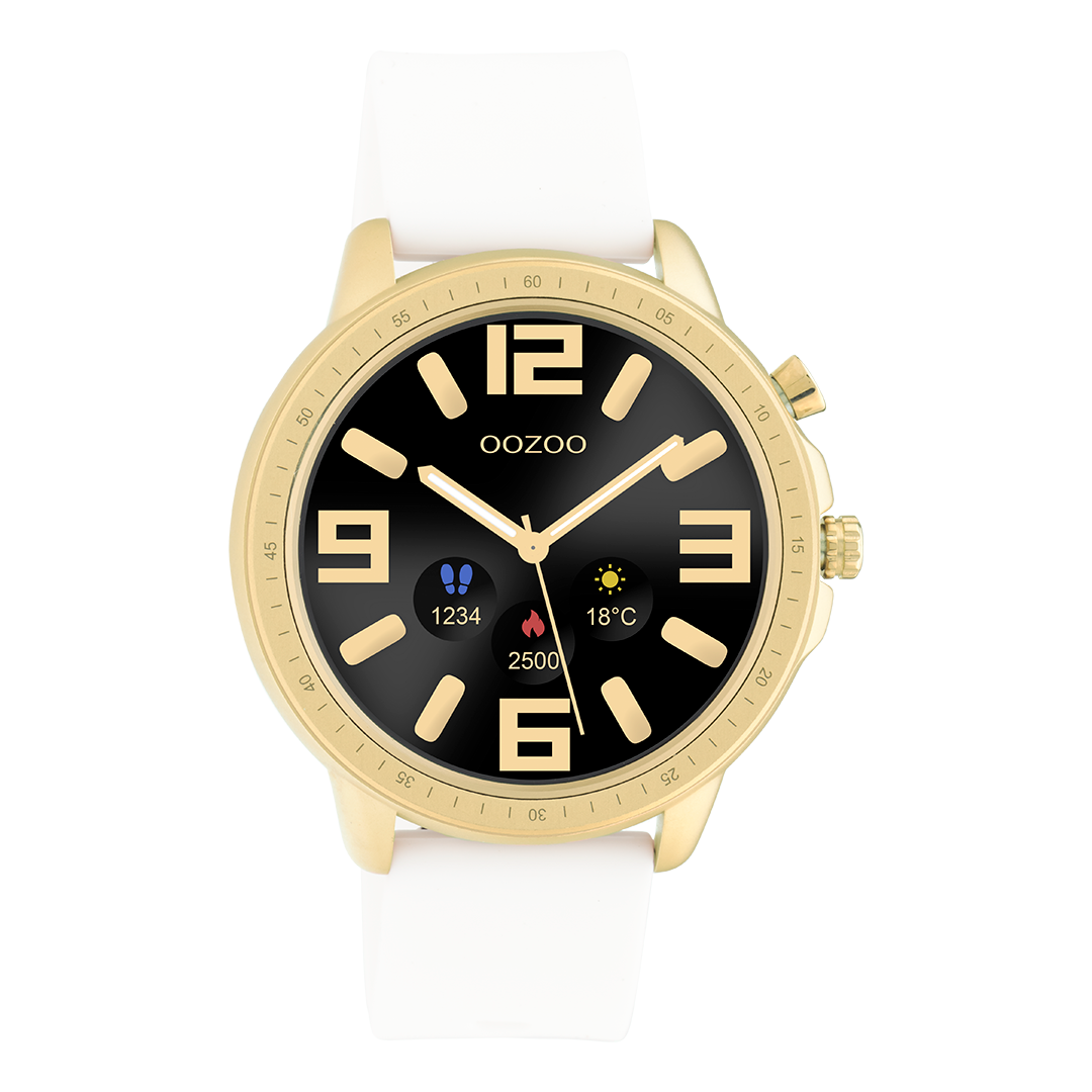 Colorato d'oro OOZOO smartwatch con cinturino in gomma bianca - Q00316