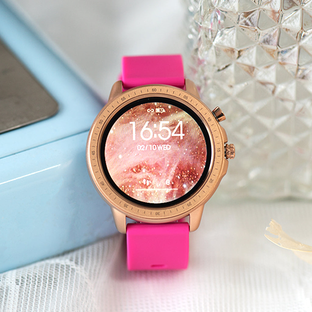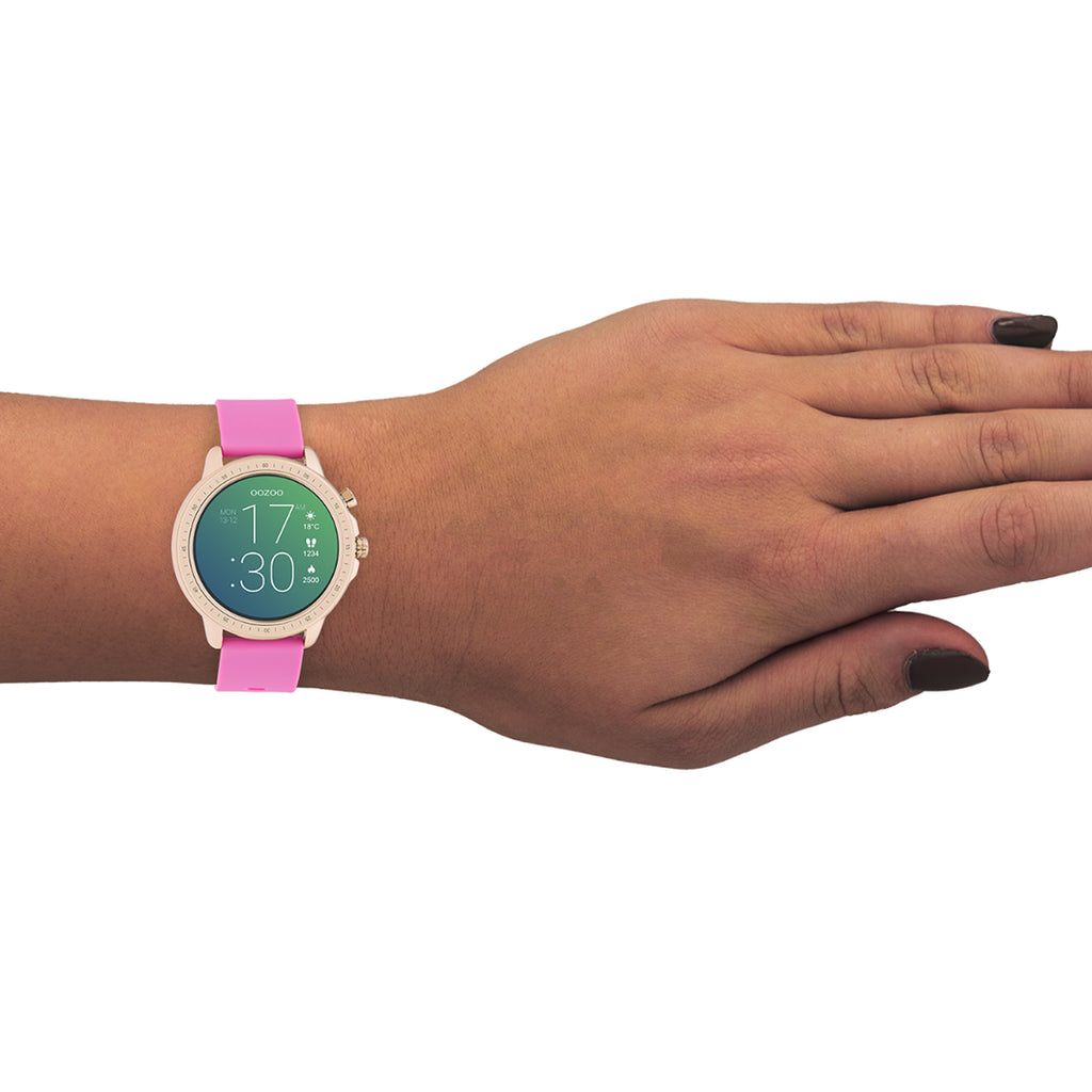 Color oro rosa OOZOO Smartwatch con cinghia di gomma rosa di lampone - Q00325