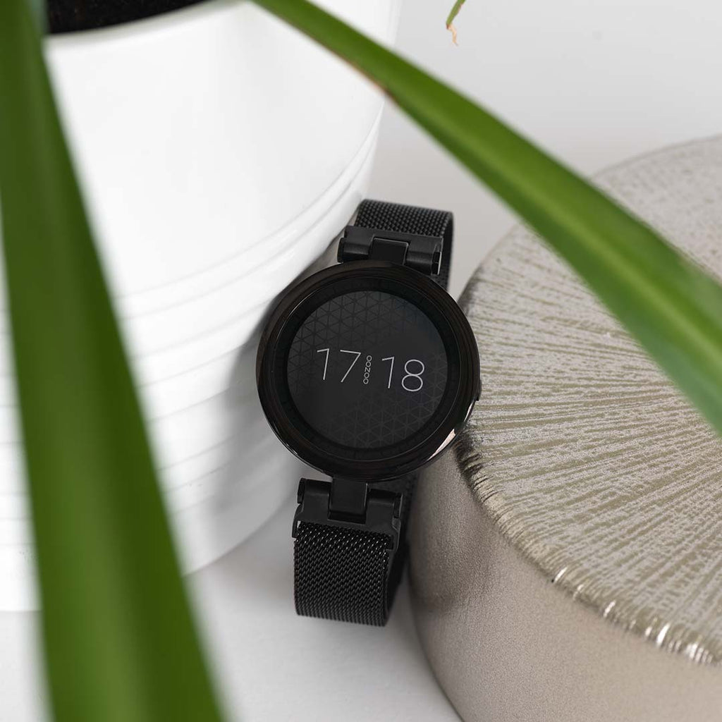 Nero OOZOO smartwatch con braccialetto in maglia in metallo nero - Q00411