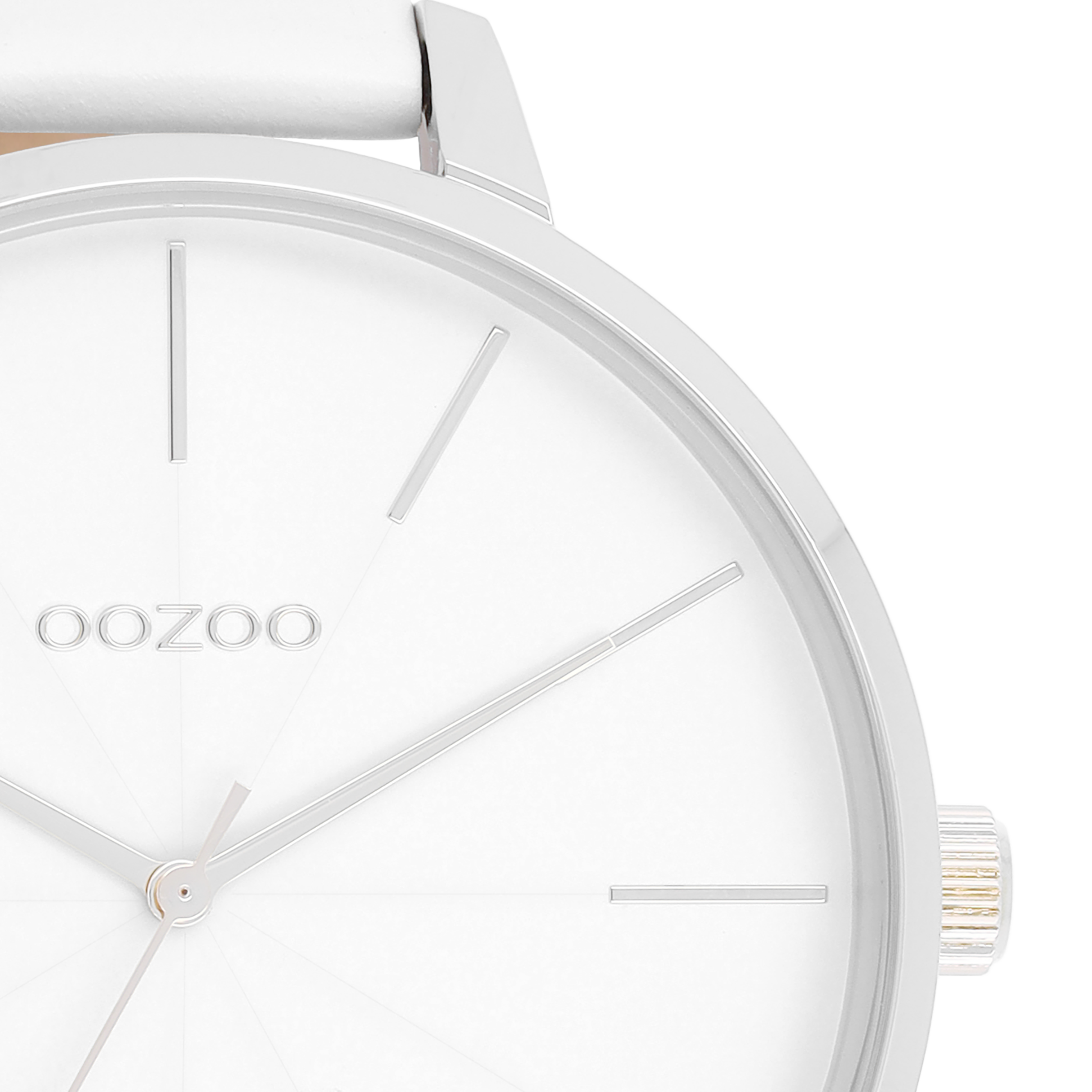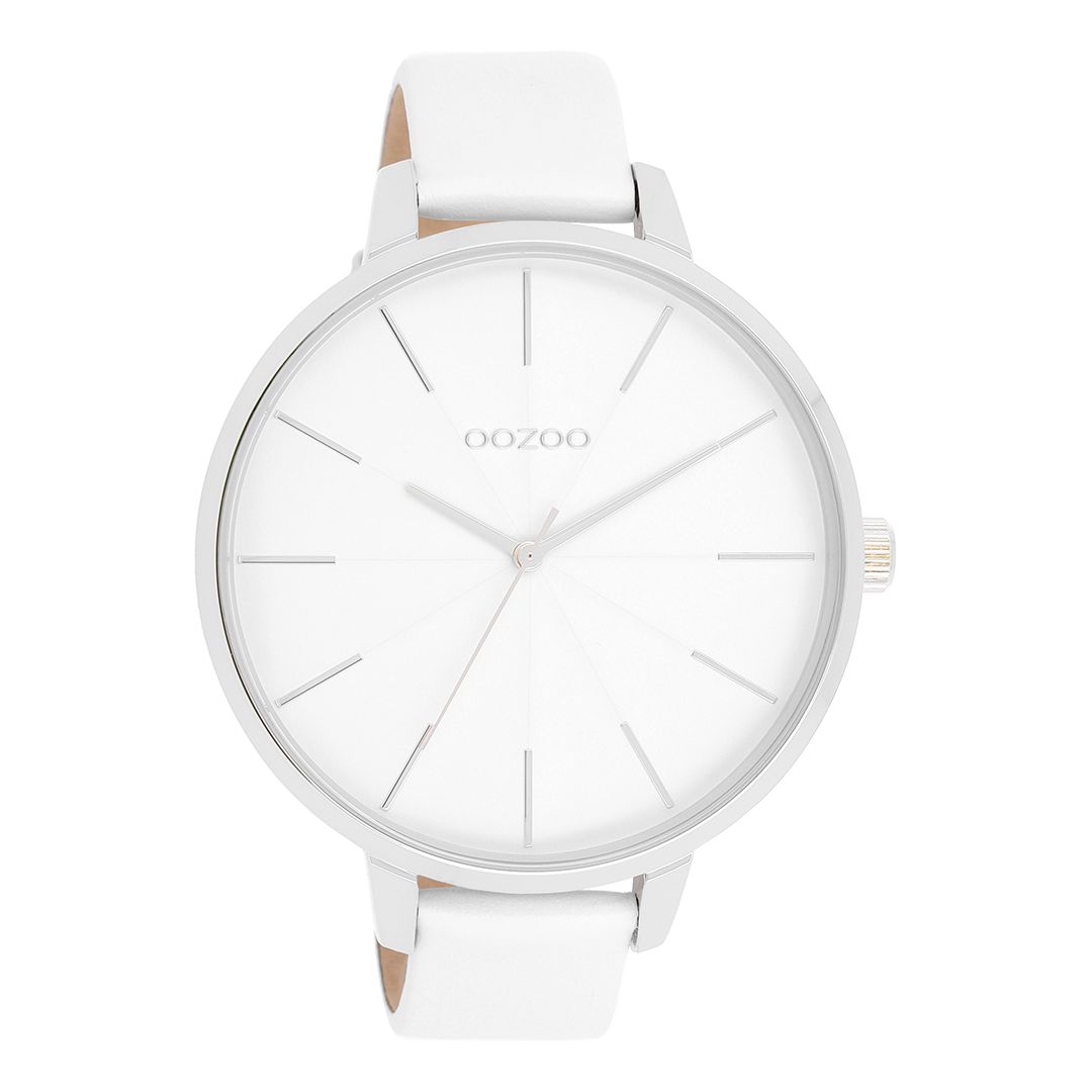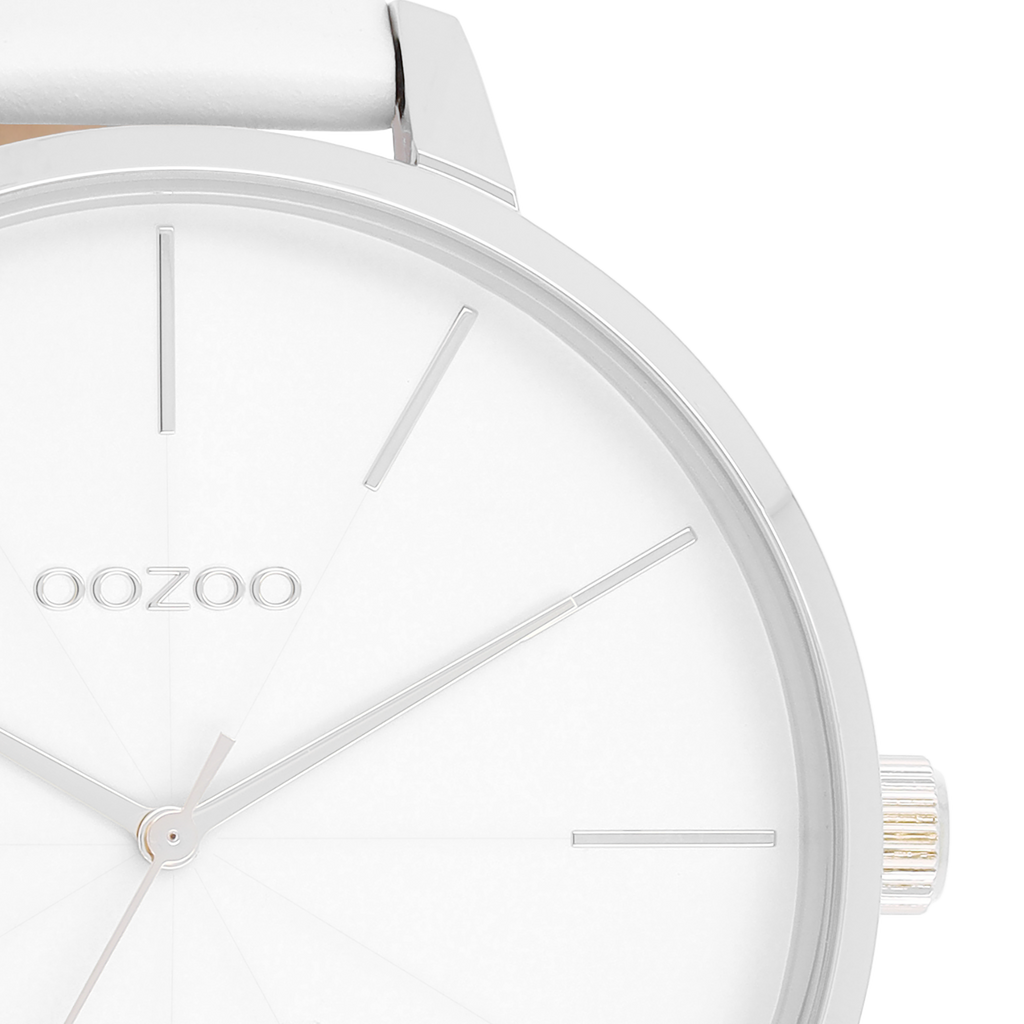 Silver coloured OOZOO watch with white leather strap - C11345