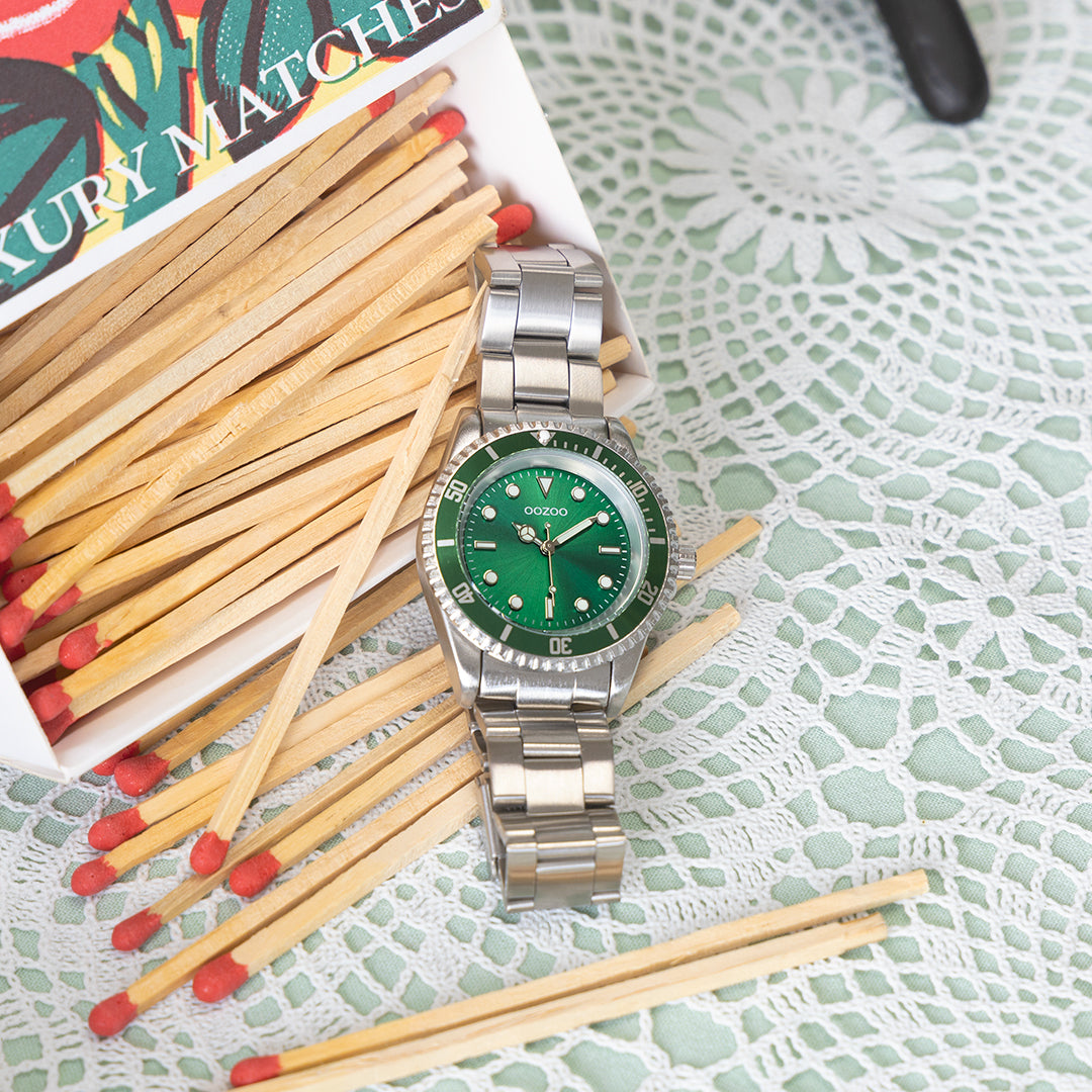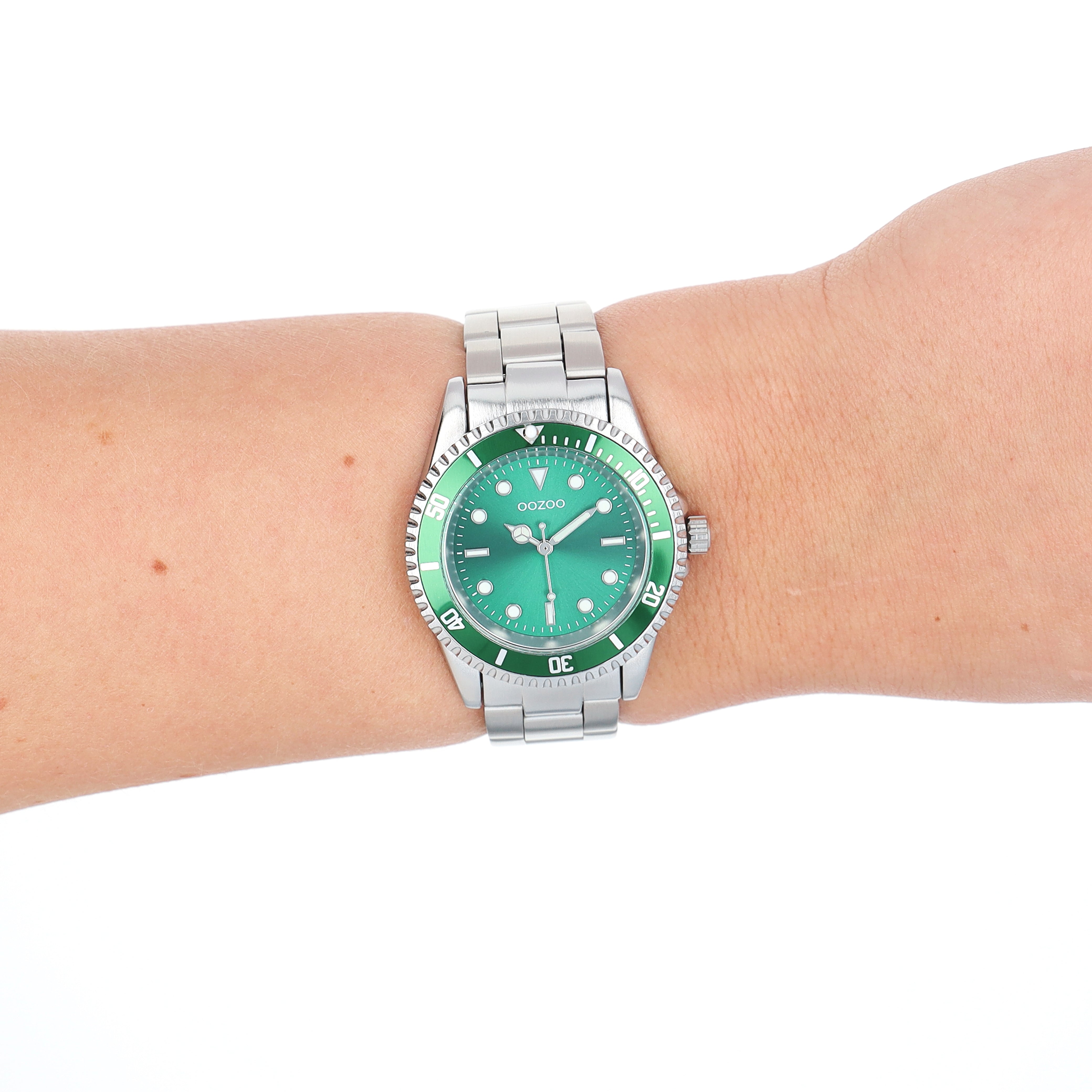 Argento colorato/verde OOZOO Guarda con braccialetto in acciaio inossidabile colorato in argento - C11146