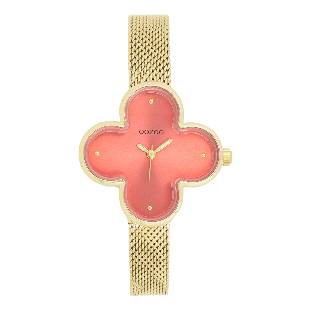 Stand out with this beautiful clover ladies design from the trendy OOZOO Timepieces collection. The C11529 has a gold coloured metal mesh bracelet and 32x32 mm gold coloured metal watch case. You are making quite the fashion statement with this camellia red sunray dial, gold coloured dots digits and matching hands. This essential watch for your wardrobe has a mineral glass, stainless steel backplate and is nickel safe. This watch has a 2ATM Japanese movement and is covered by a 2 year warranty (see section 3 of our Refund, shipping & warranty policy).