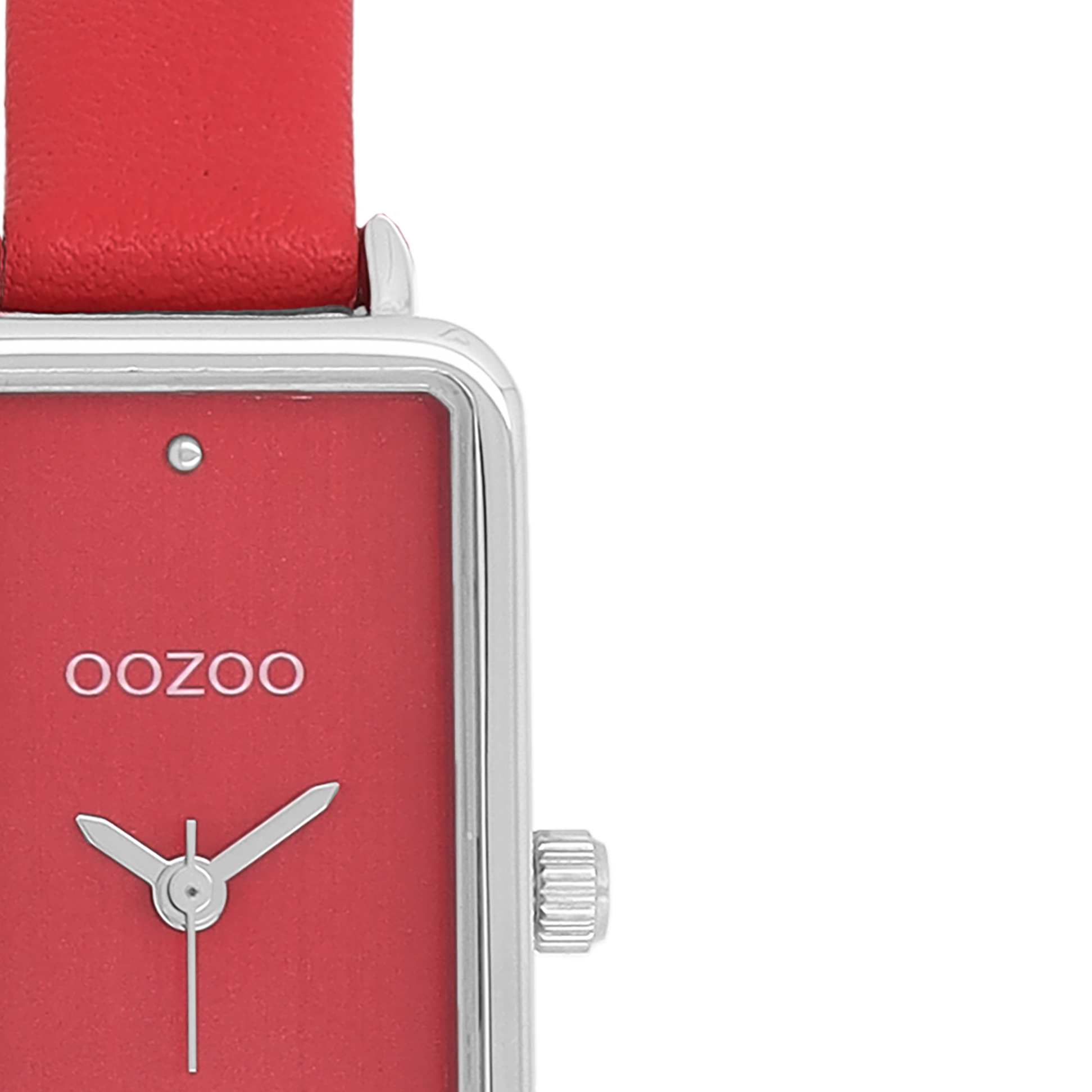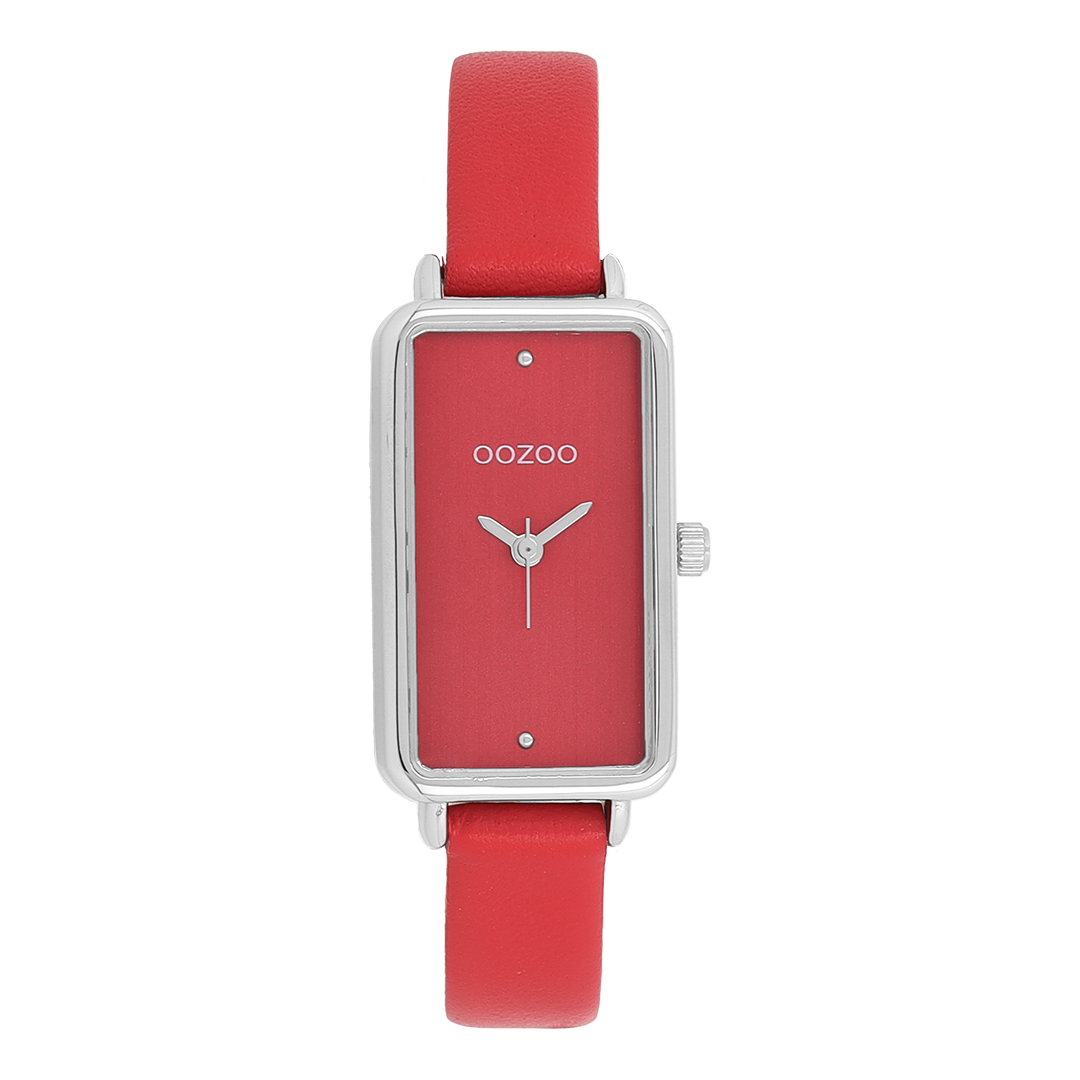 Stand out with this beautiful rectangle ladies design from the trendy OOZOO Timepieces collection. The C11532 has a red leather strap and 19x31 mm silver coloured metal watch case. You are making quite the fashion statement with this red dial, silver coloured dots digits and matching hands. This essential watch for your wardrobe has a mineral glass, stainless steel backplate and is nickel safe. This watch has a 2ATM Japanese movement and is covered by a 2 year warranty (see section 3 of our Refund, shipping & warranty policy).