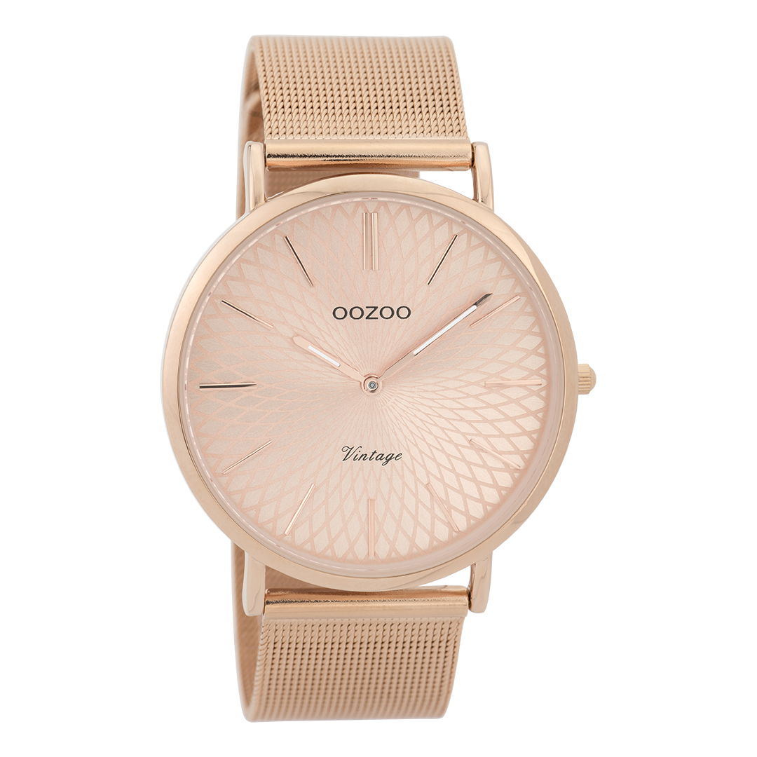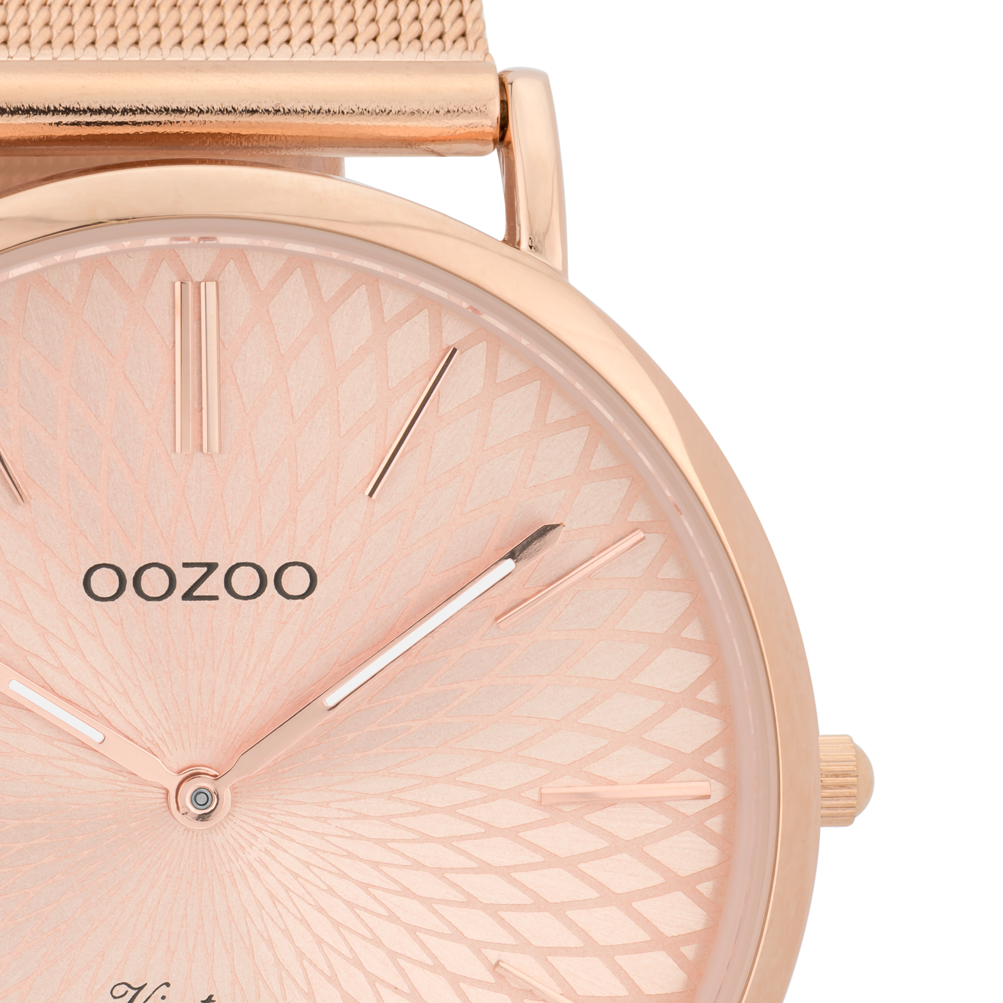 Rose gold coloured OOZOO watch with metal mesh bracelet - C9343