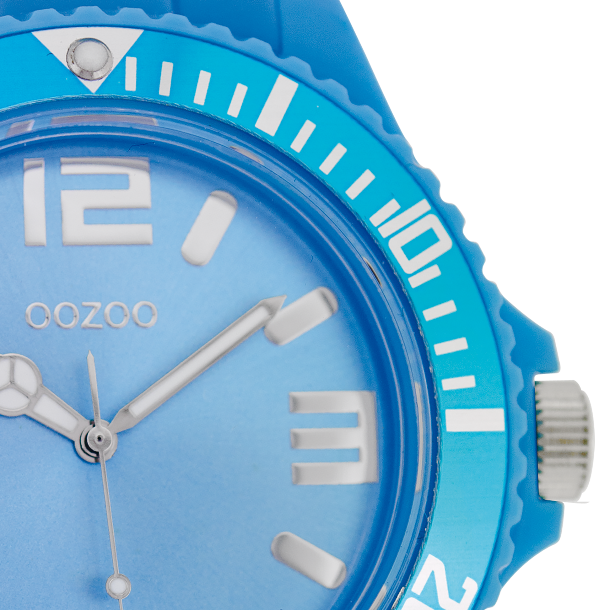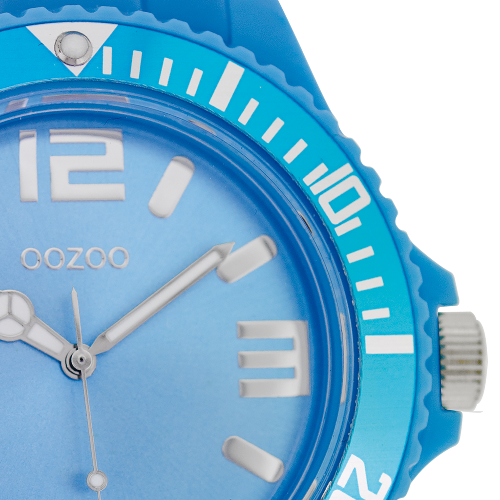 Stand out with this beautiful round unisex design from the trendy OOZOO Timepieces collection. The C4655 has a light blue rubber strap and 48 mm light blue plastic watch case. You are making quite the fashion statement with this light blue sunray dial, silver coloured stripes and numbers digits and silver coloured/white hands. This essential watch for your wardrobe has a mineral glass, stainless steel backplate and is nickel safe. This watch has a 2 Japanese movement and is covered by a 2 year warranty (see section 3 of our Refund, shipping & warranty policy).