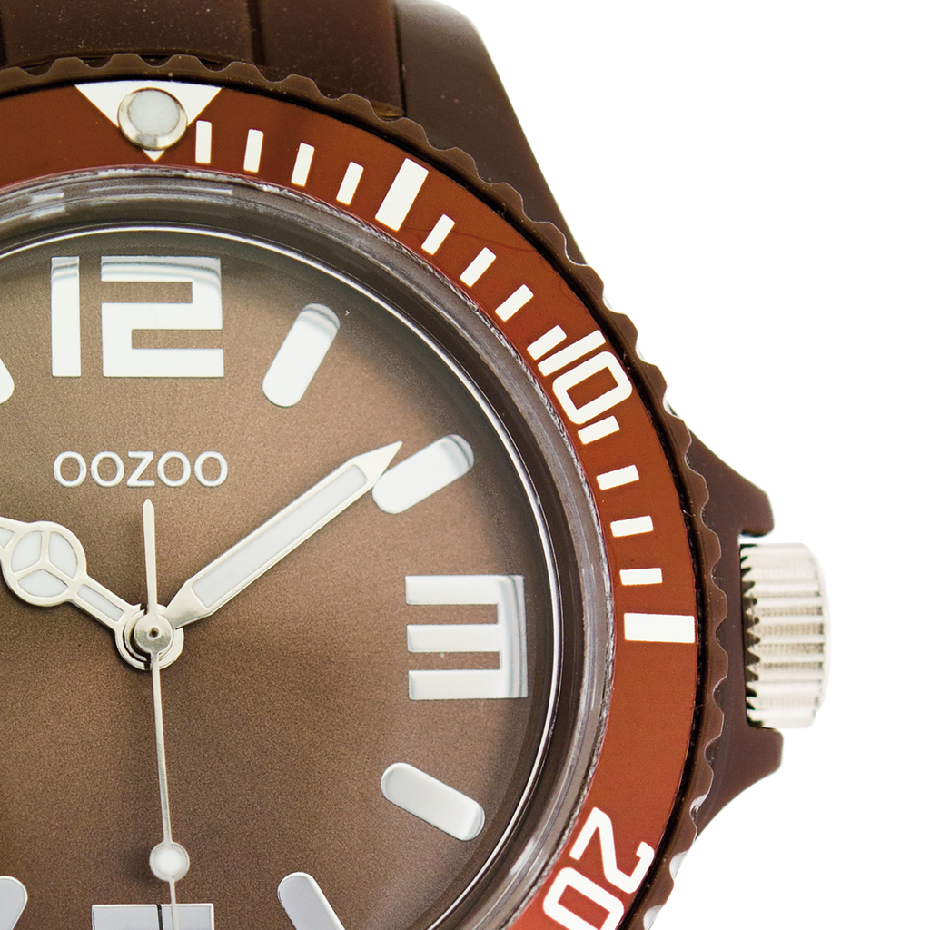 Stand out with this beautiful round unisex design from the trendy OOZOO Timepieces collection. The C4663 has a dark brown rubber strap and 43 mm dark brown plastic watch case. You are making quite the fashion statement with this dark brown sunray dial, silver coloured stripes and numbers digits and silver coloured/white hands. This essential watch for your wardrobe has a mineral glass, stainless steel backplate and is nickel safe. This watch has a 2 Japanese movement and is covered by a 2 year warranty (see section 3 of our Refund, shipping & warranty policy).