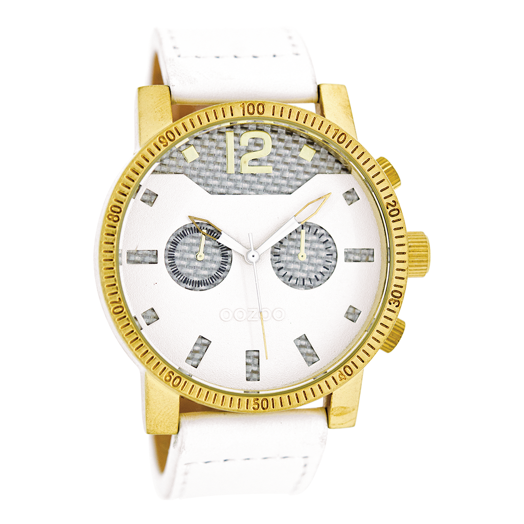 Gold coloured OOZOO watch with white leather strap - C4796