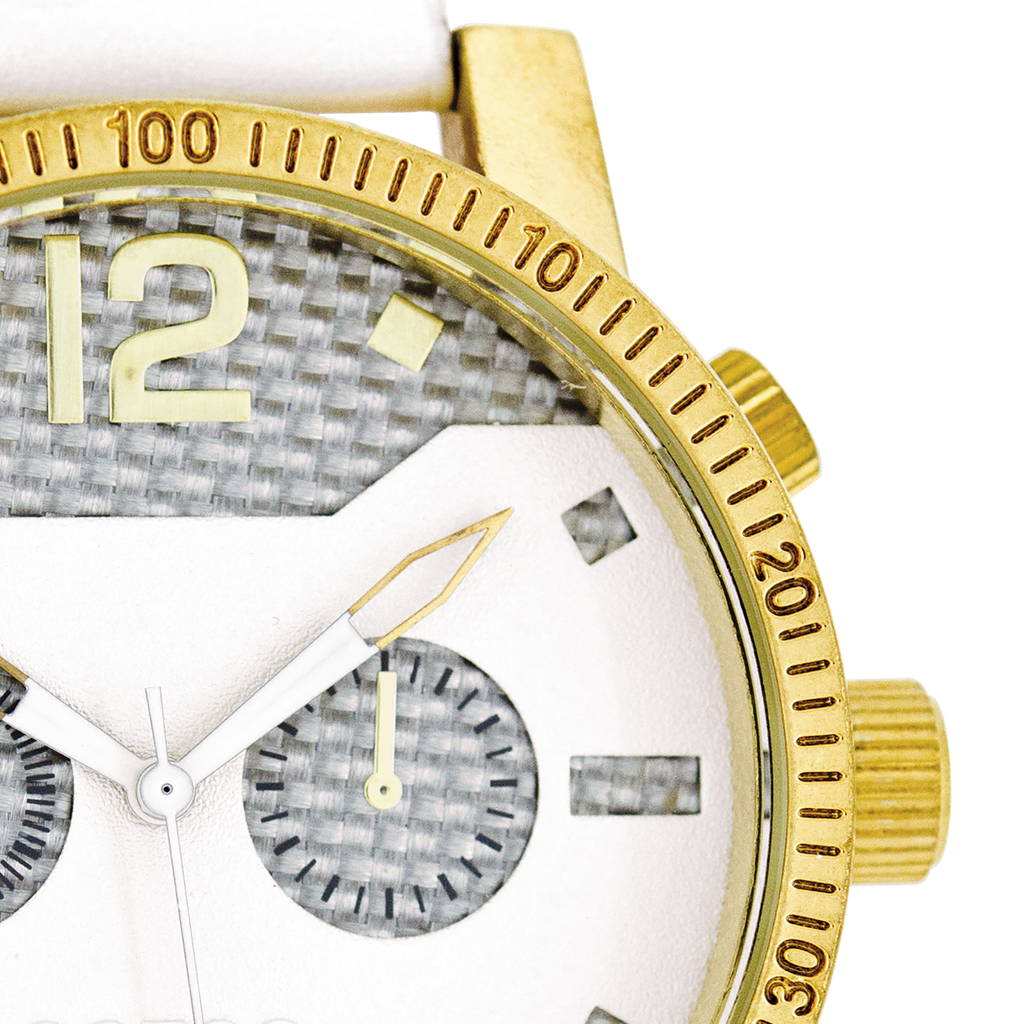 Stand out with this beautiful round gents design from the trendy OOZOO Timepieces collection. The C4796 has a stitched white leather strap and 40 mm gold coloured matte watch case. You are making quite the fashion statement with this silver coloured/white chrono dial, gold coloured stripes and numbers digits and gold coloured/white hands. This essential watch for your wardrobe has a mineral glass, stainless steel backplate and is nickel safe. This watch has a 2 Japanese movement and is covered by a 2 year warranty (see section 3 of our Refund, shipping & warranty policy).
