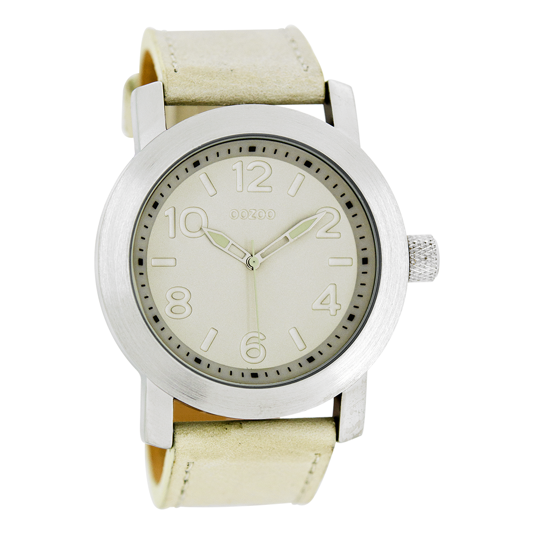 Silver coloured OOZOO watch with beige leather strap - C5150