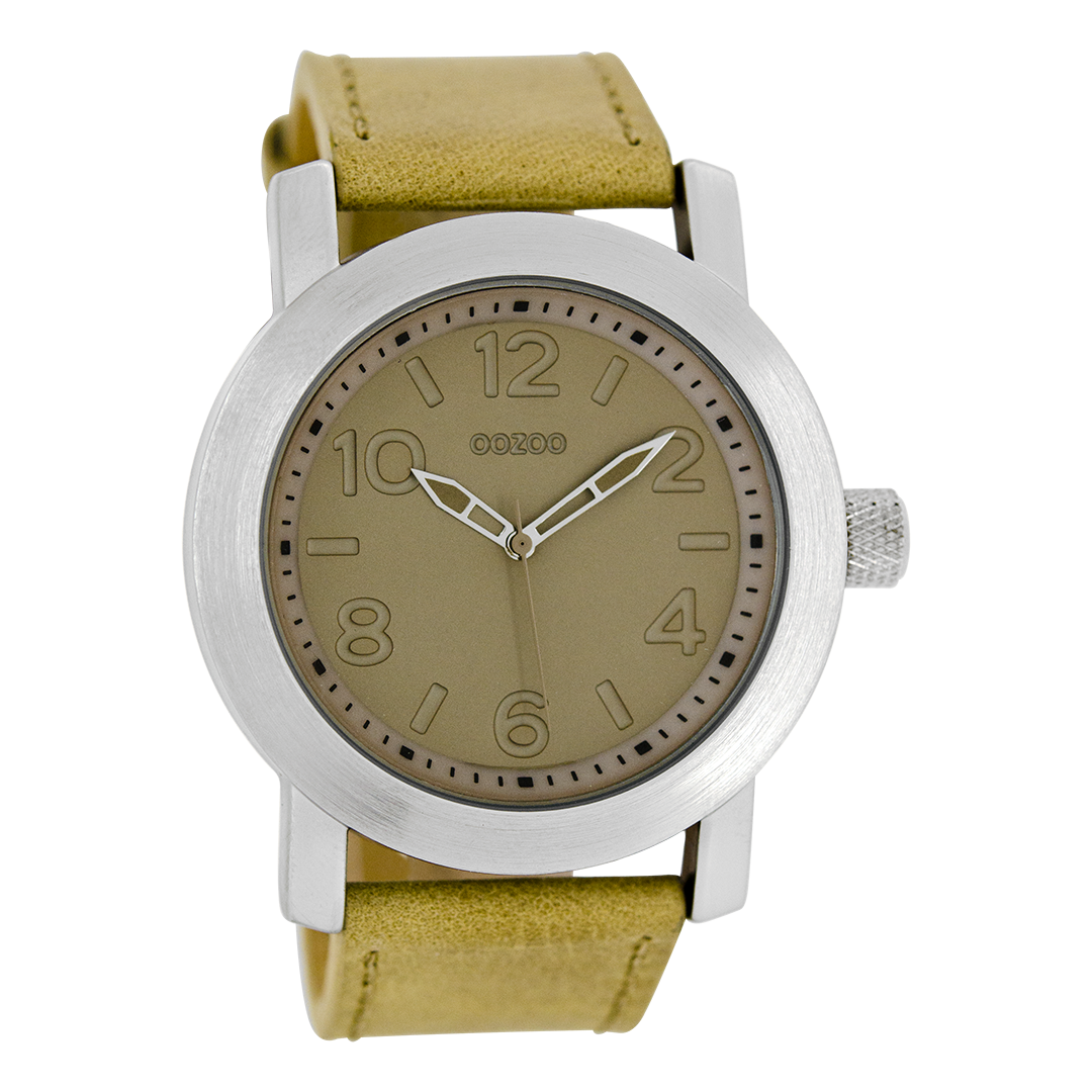 Silver coloured OOZOO watch with sand leather strap - C5151