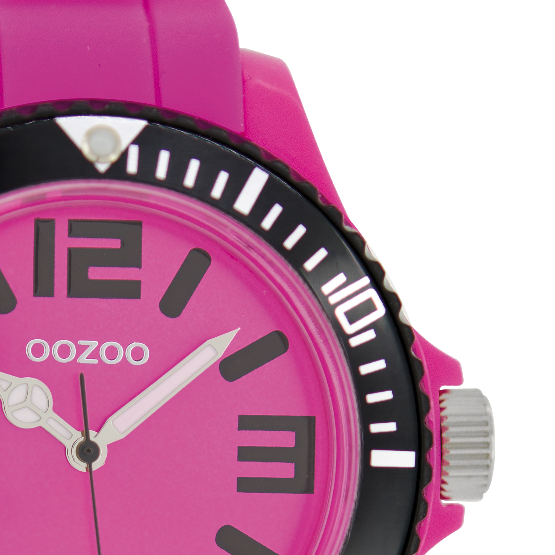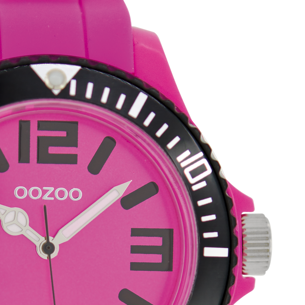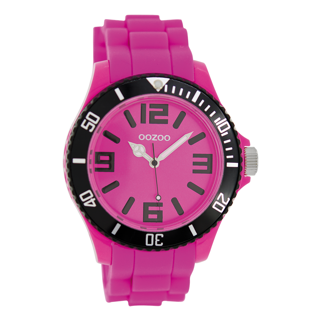 Stand out with this beautiful round unisex design from the trendy OOZOO Timepieces collection. The C5844 has a pink rubber strap and 43 mm pink plastic watch case. You are making quite the fashion statement with this pink dial, black stripes and numbers digits and silver coloured/white hands. This essential watch for your wardrobe has a mineral glass, stainless steel backplate and is nickel safe. This watch has a 2 Japanese movement and is covered by a 2 year warranty (see section 3 of our Refund, shipping & warranty policy).