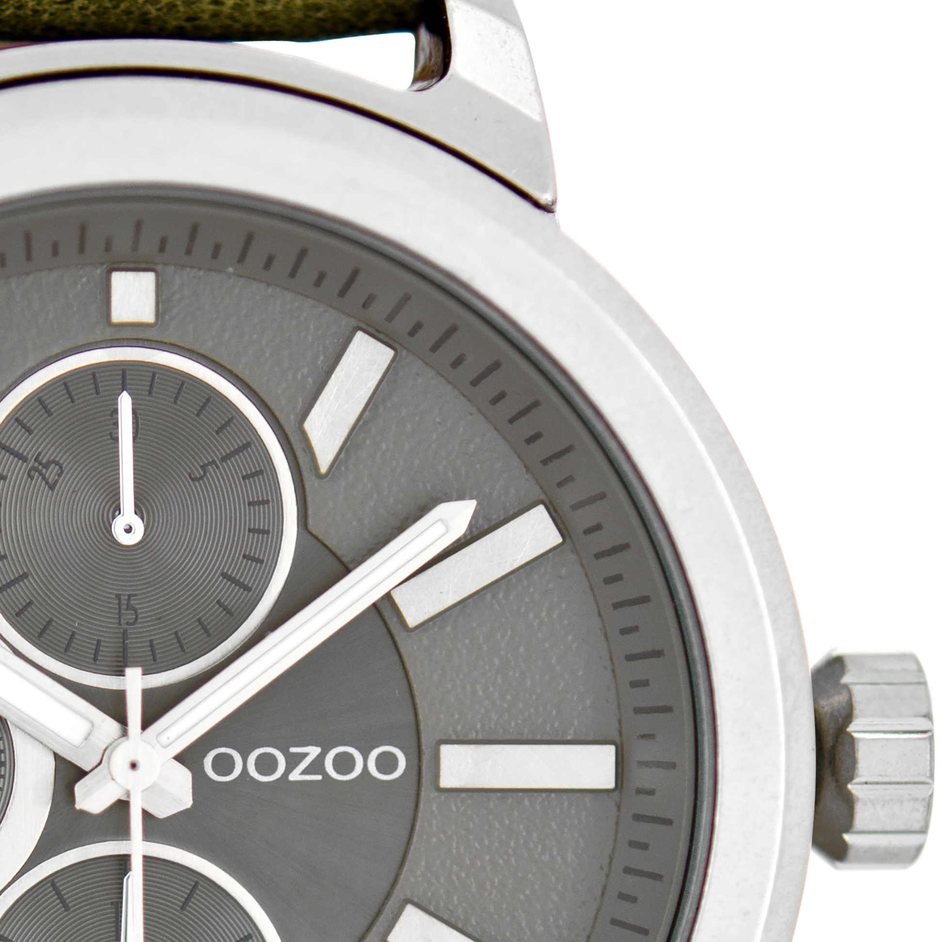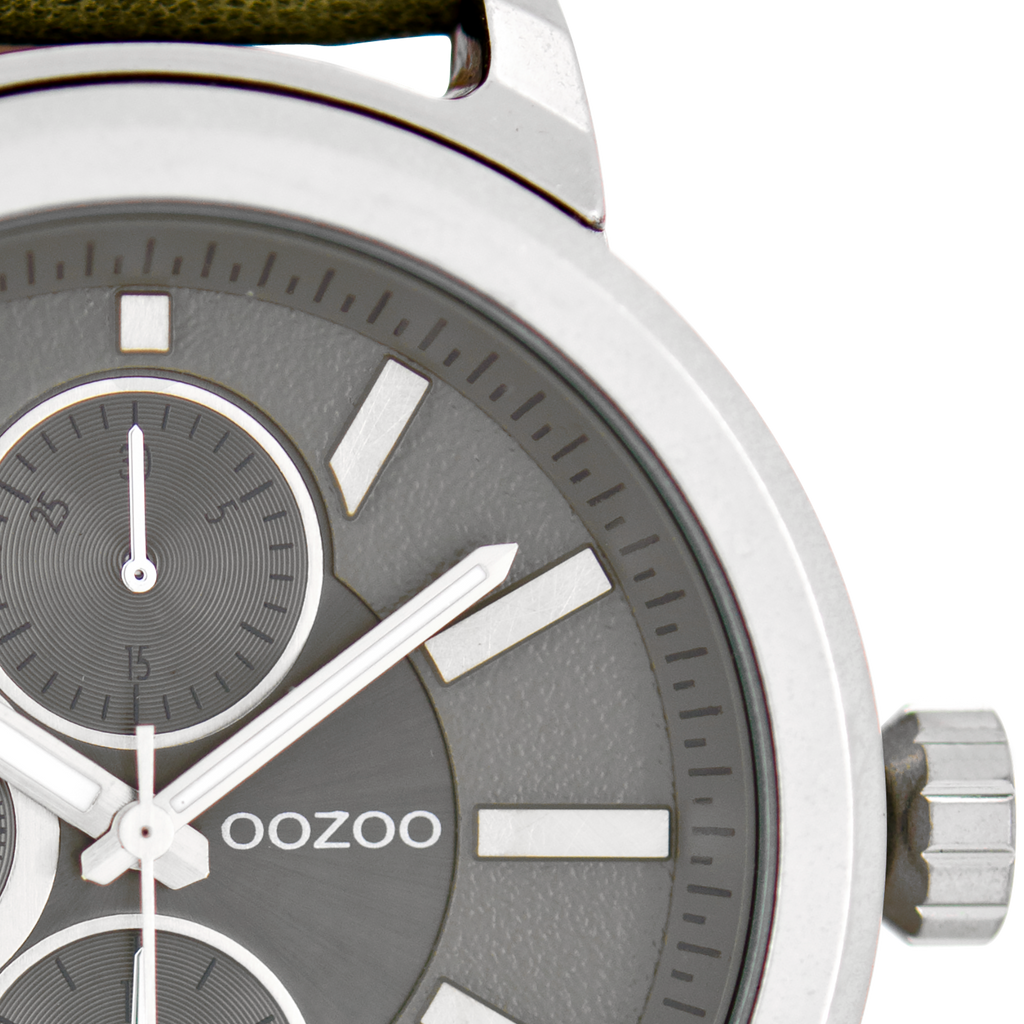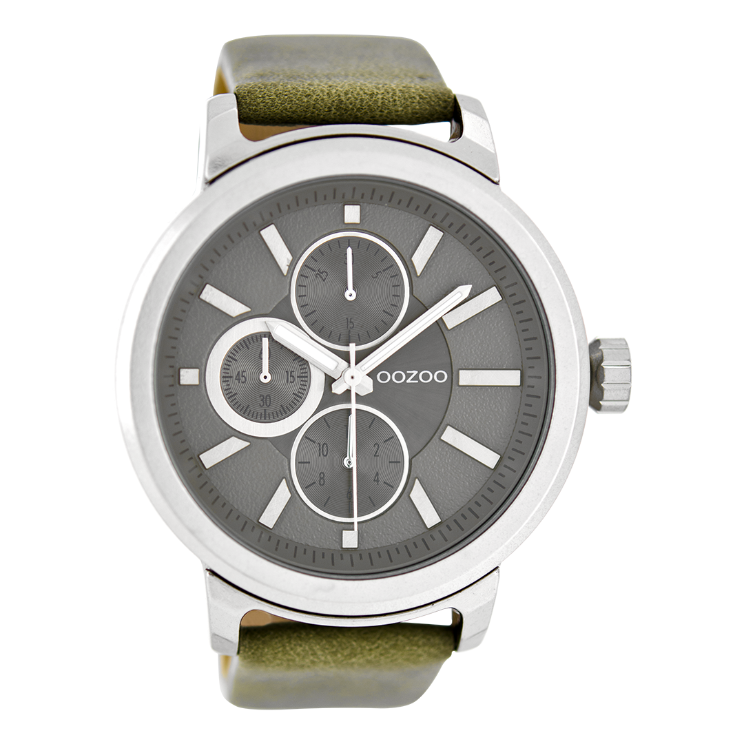 Silver coloured OOZOO watch with green grey leather strap - C6066