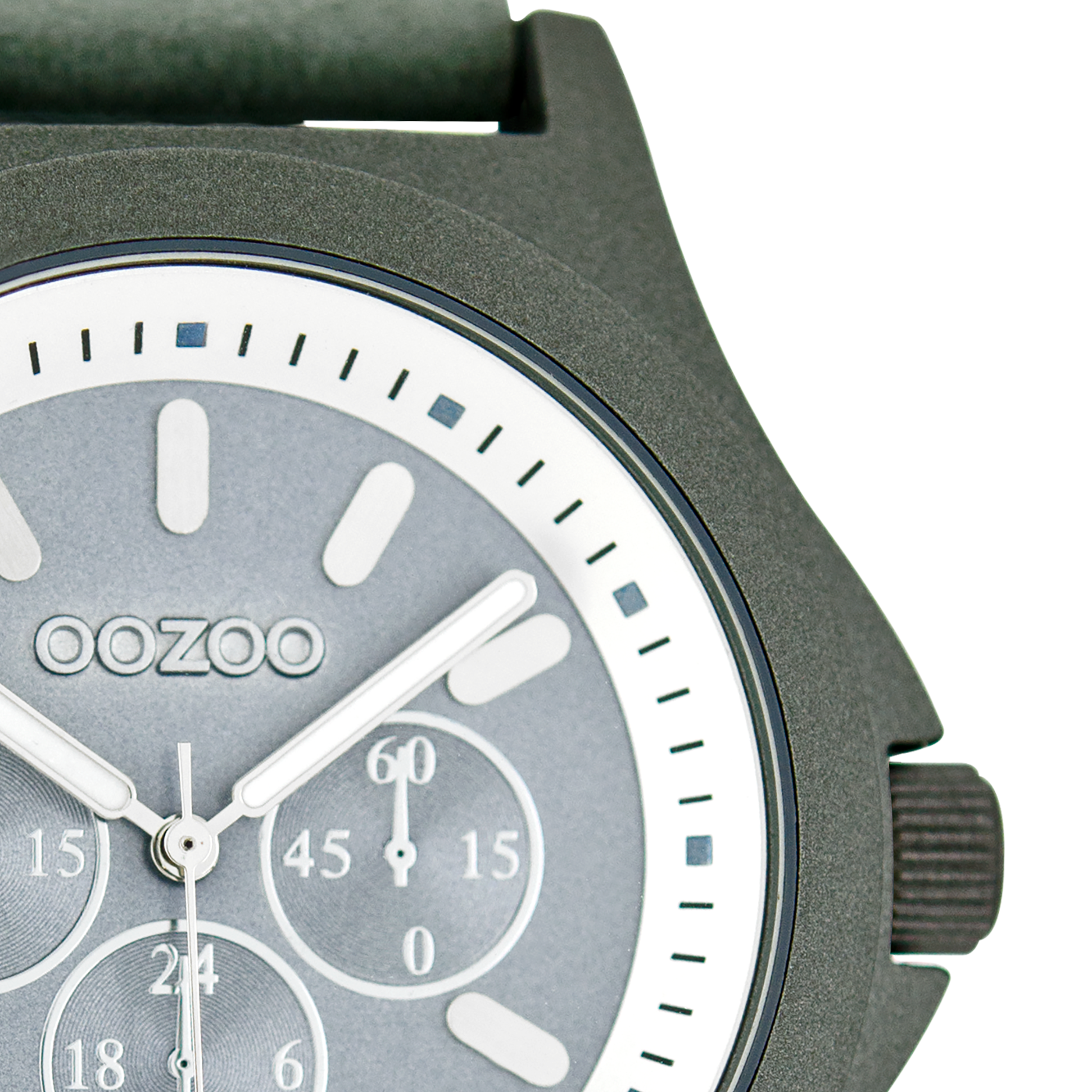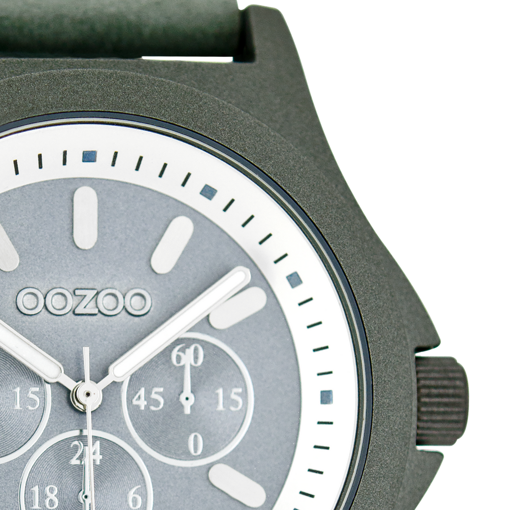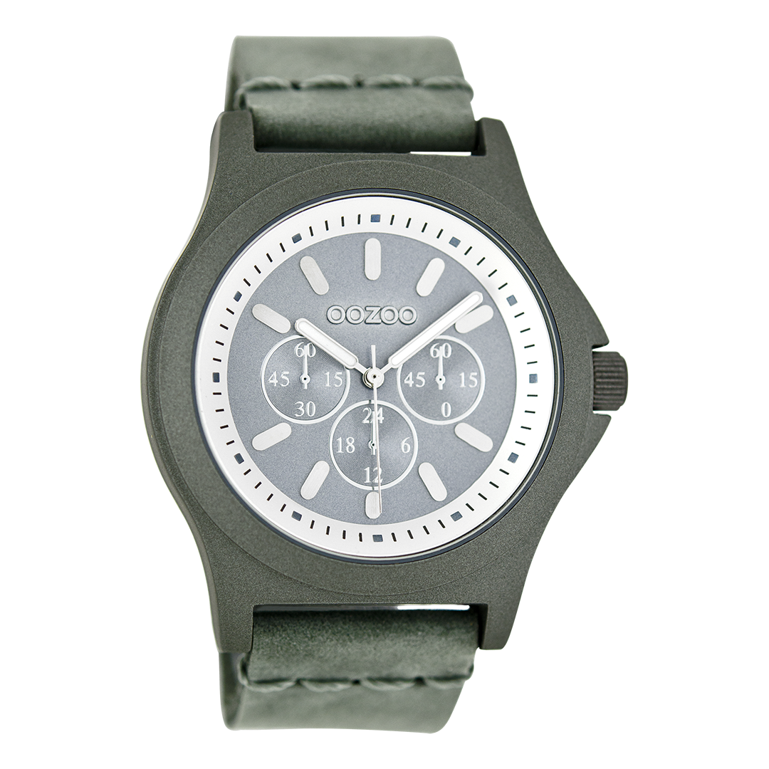 Stand out with this beautiful round ladies design from the trendy OOZOO Timepieces collection. The C6513 has a stitched green grey leather strap and 43 mm green grey matte watch case. You are making quite the fashion statement with this grey chrono dial, silver coloured stripes digits and silver coloured/white hands. This essential watch for your wardrobe has a mineral glass, stainless steel backplate and is nickel safe. This watch has a 2 Japanese movement and is covered by a 2 year warranty (see section 3 of our Refund, shipping & warranty policy).