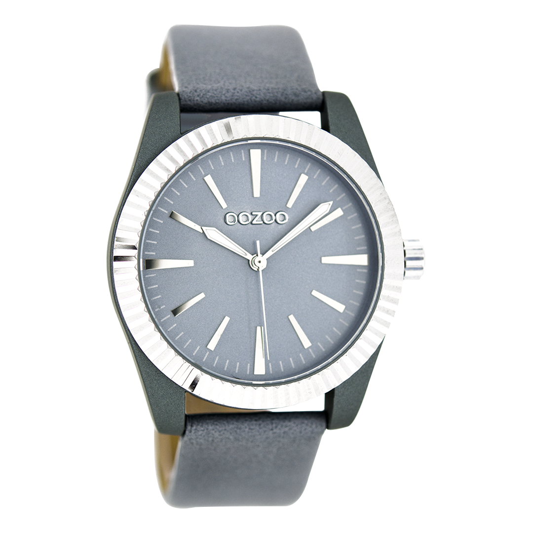 Silver coloured OOZOO watch with aqua grey leather strap - C6517