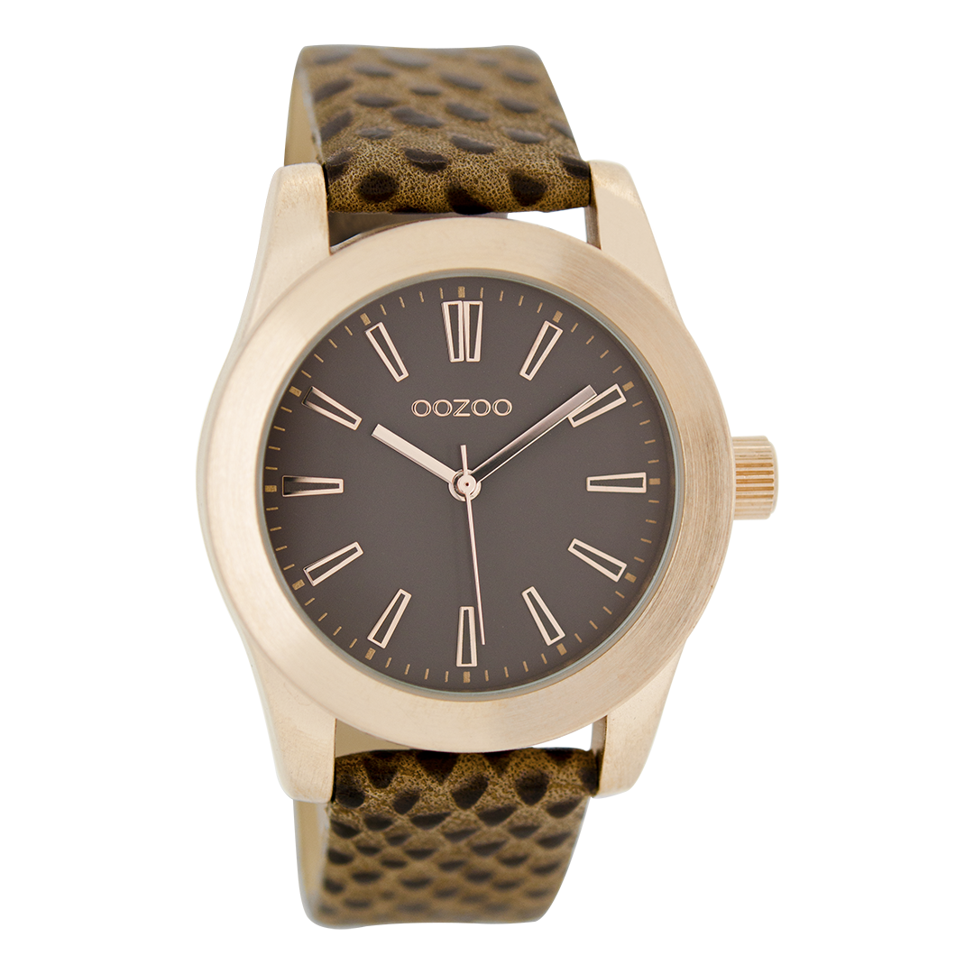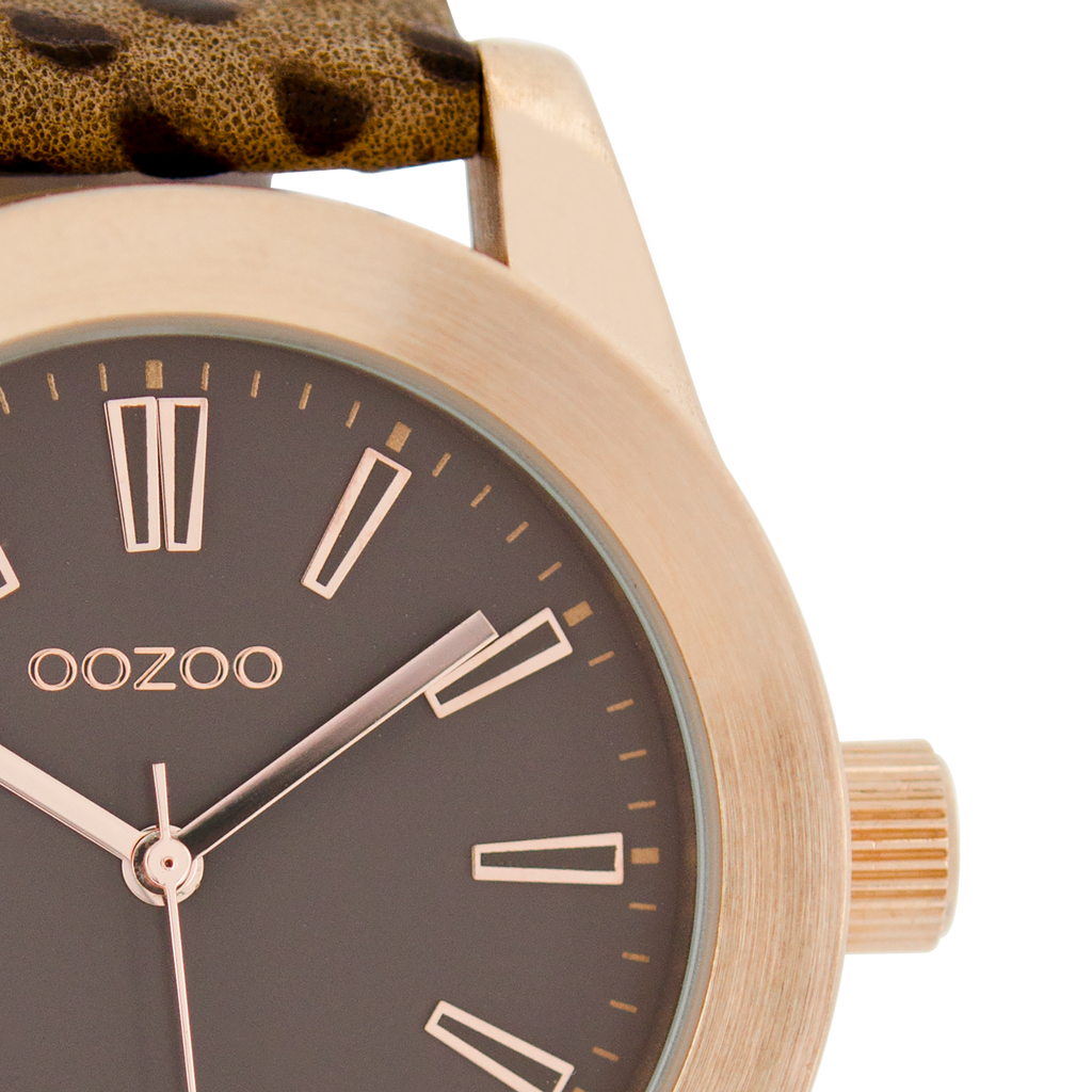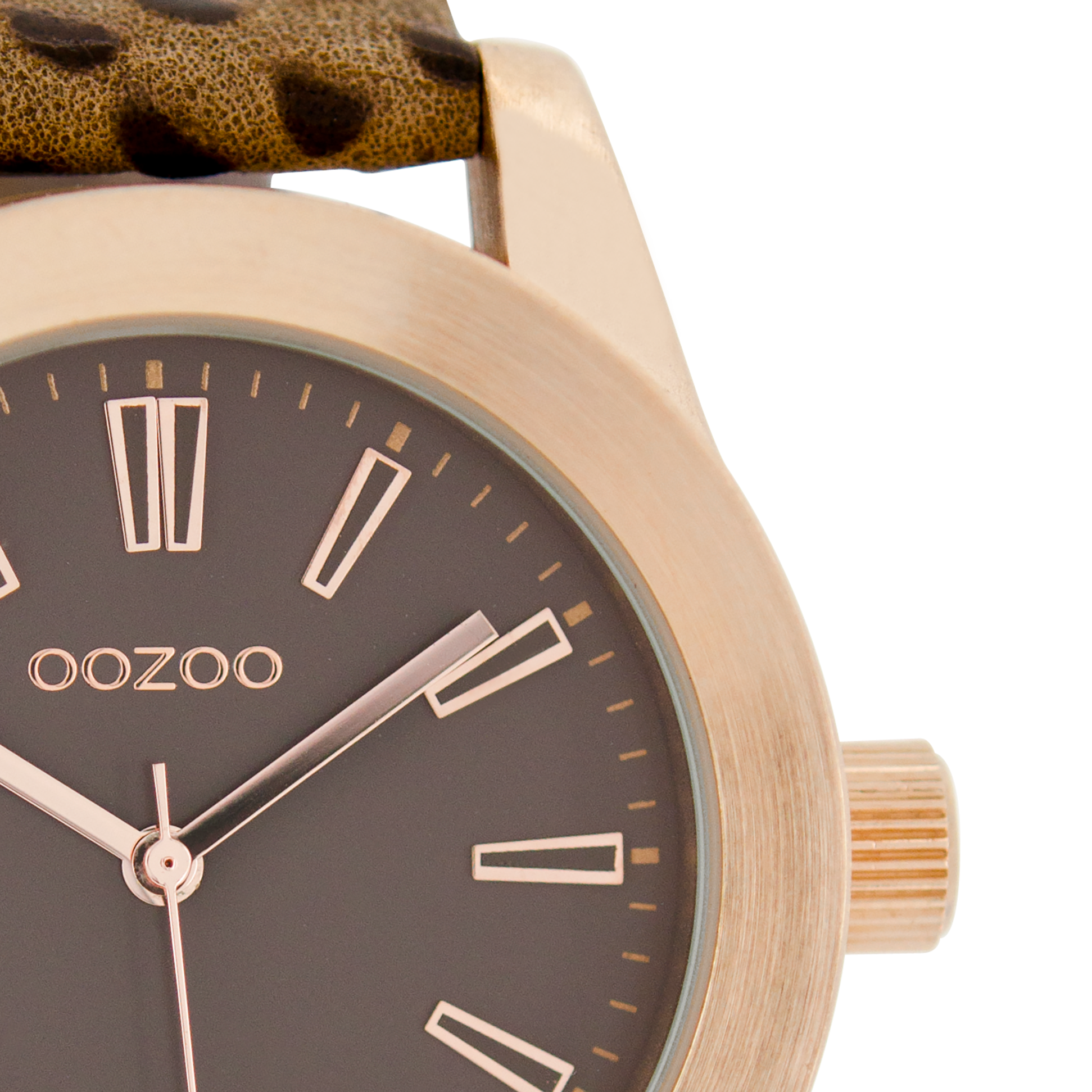 Rose gold coloured OOZOO watch with brown leather strap - C6862