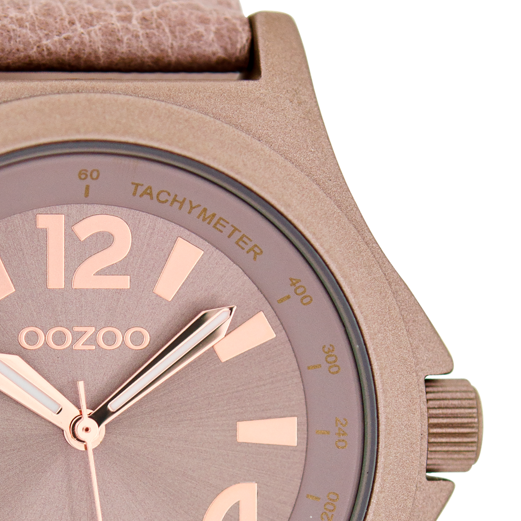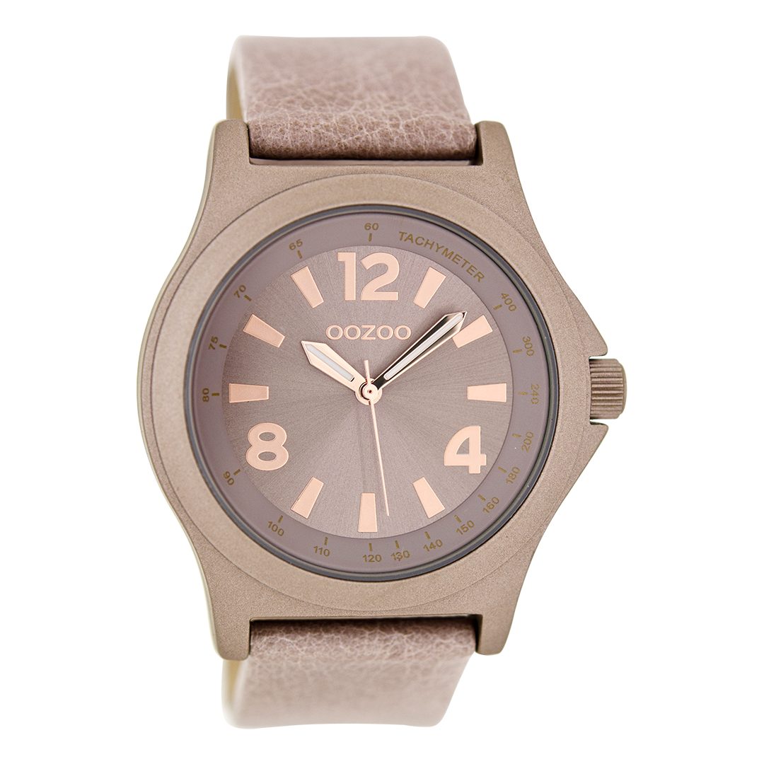 Rose gold coloured OOZOO watch with pink grey leather strap - C6876