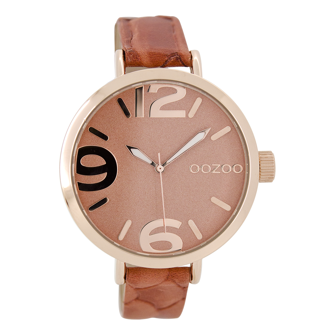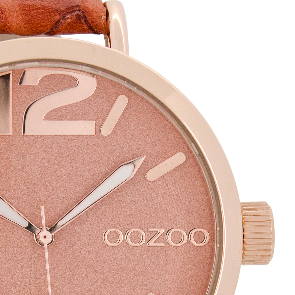 Rose gold coloured OOZOO watch with coral coloured leather strap - C7152