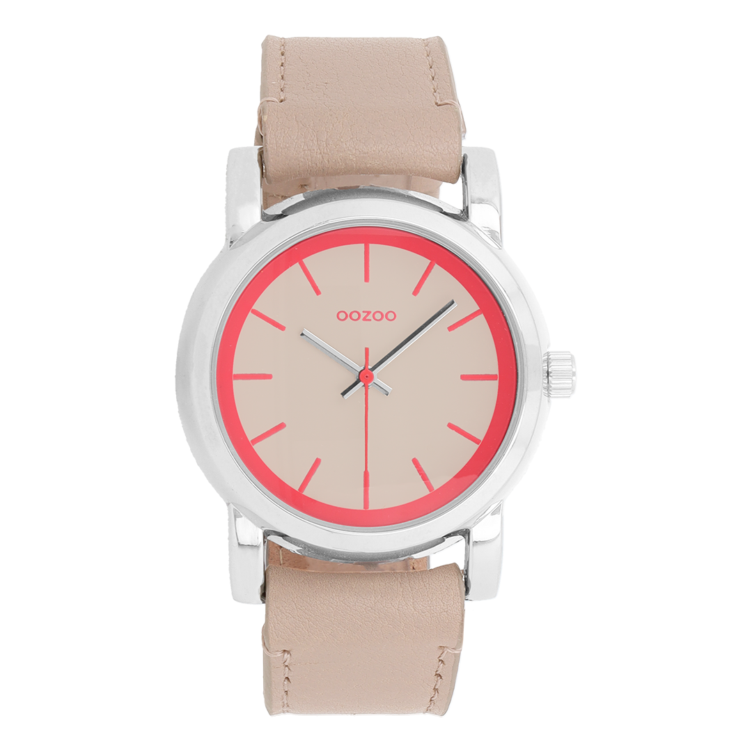 Silver coloured OOZOO watch with sand leather strap - C7180
