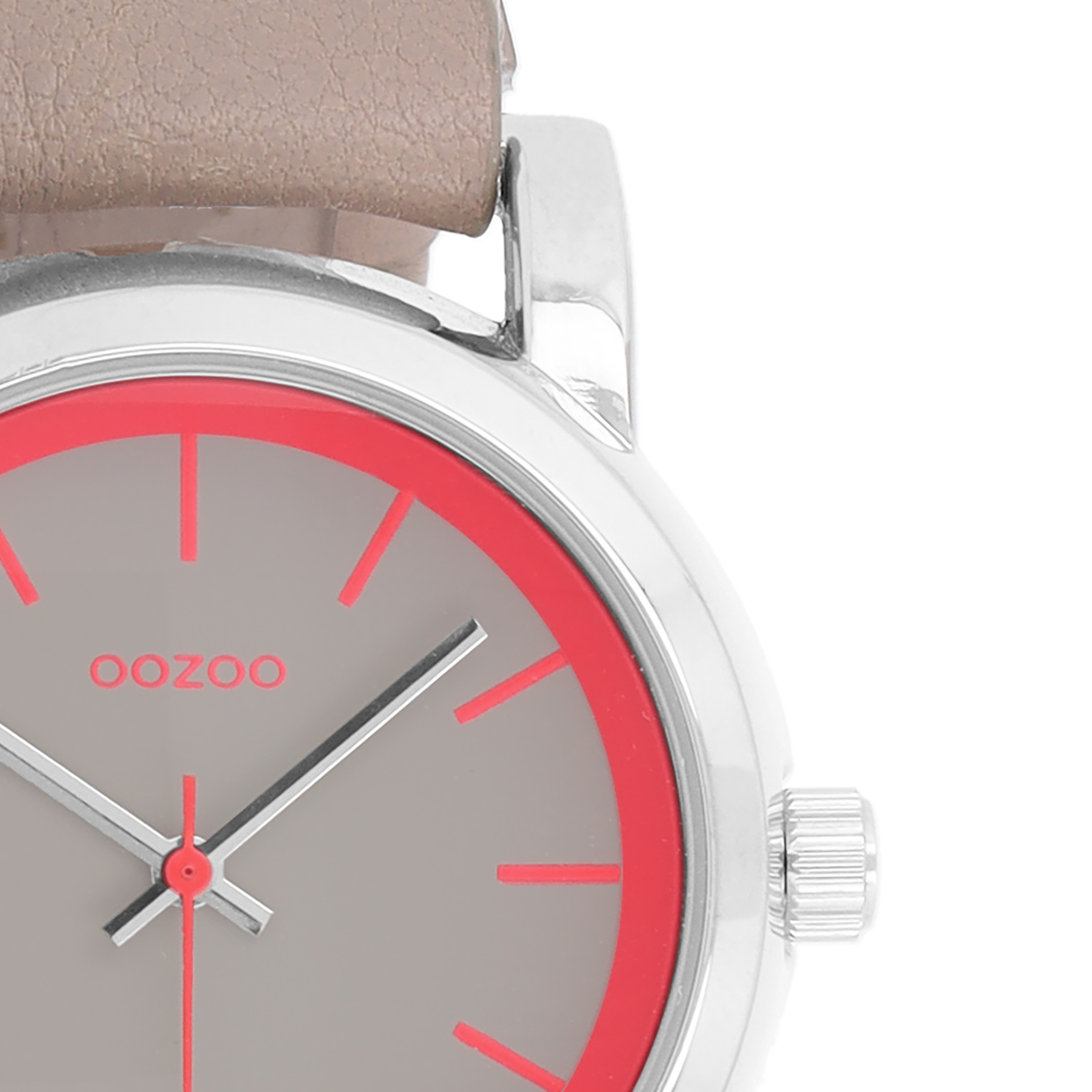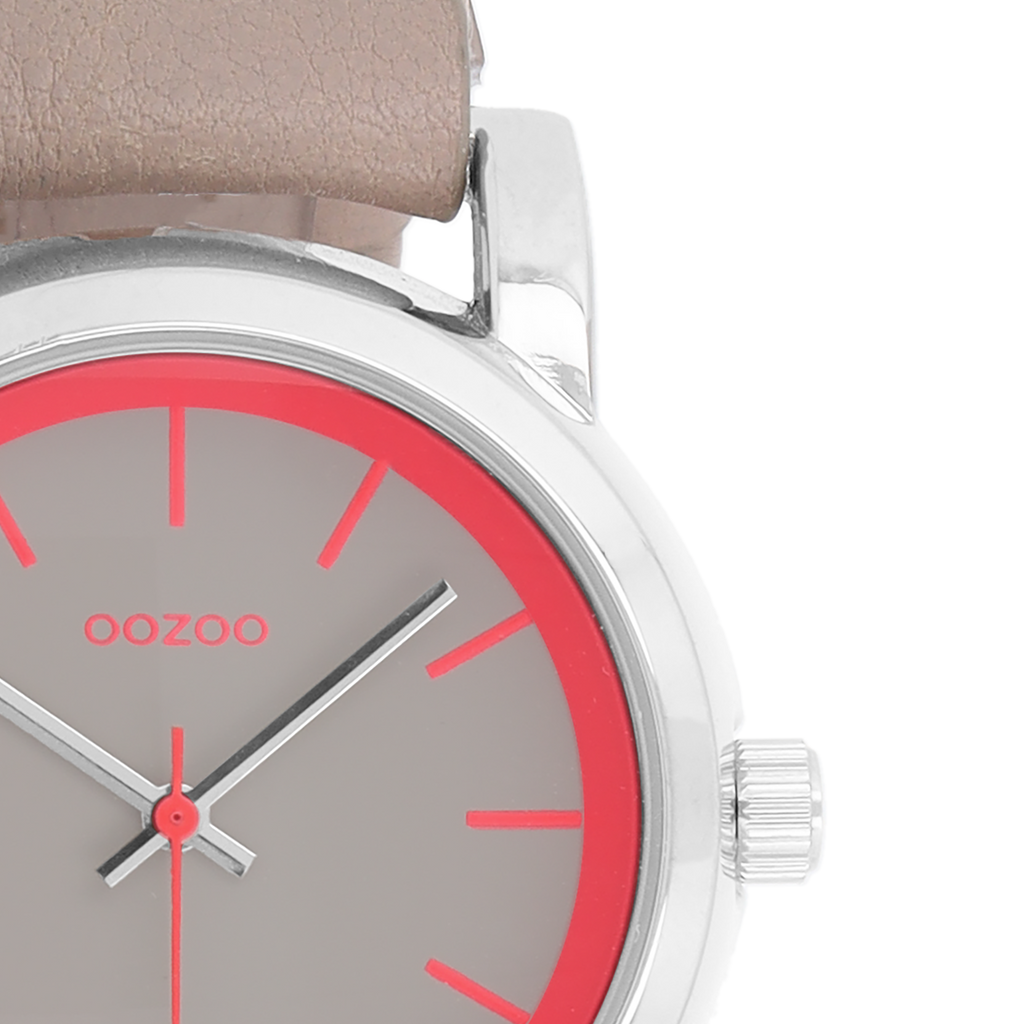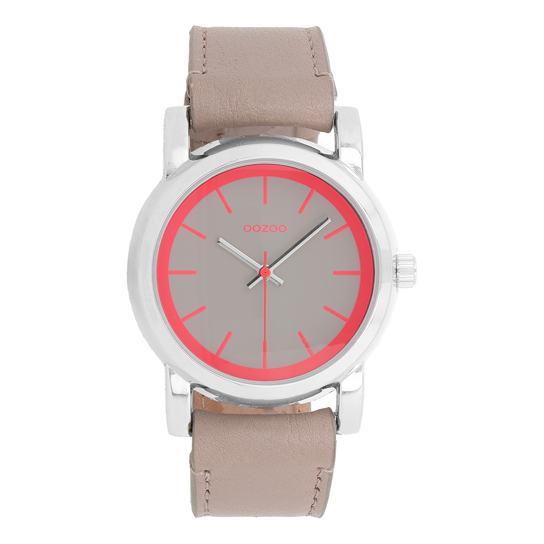 Silver coloured OOZOO watch with taupe leather strap - C7182