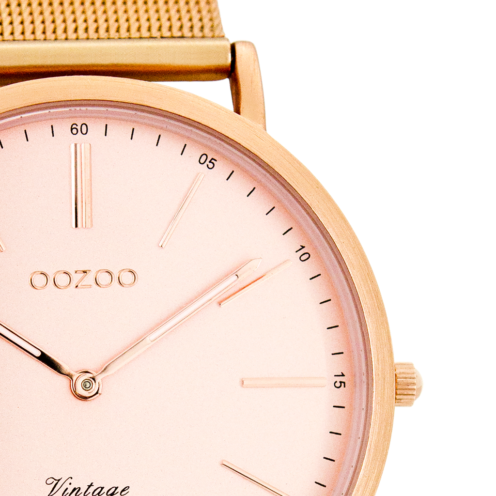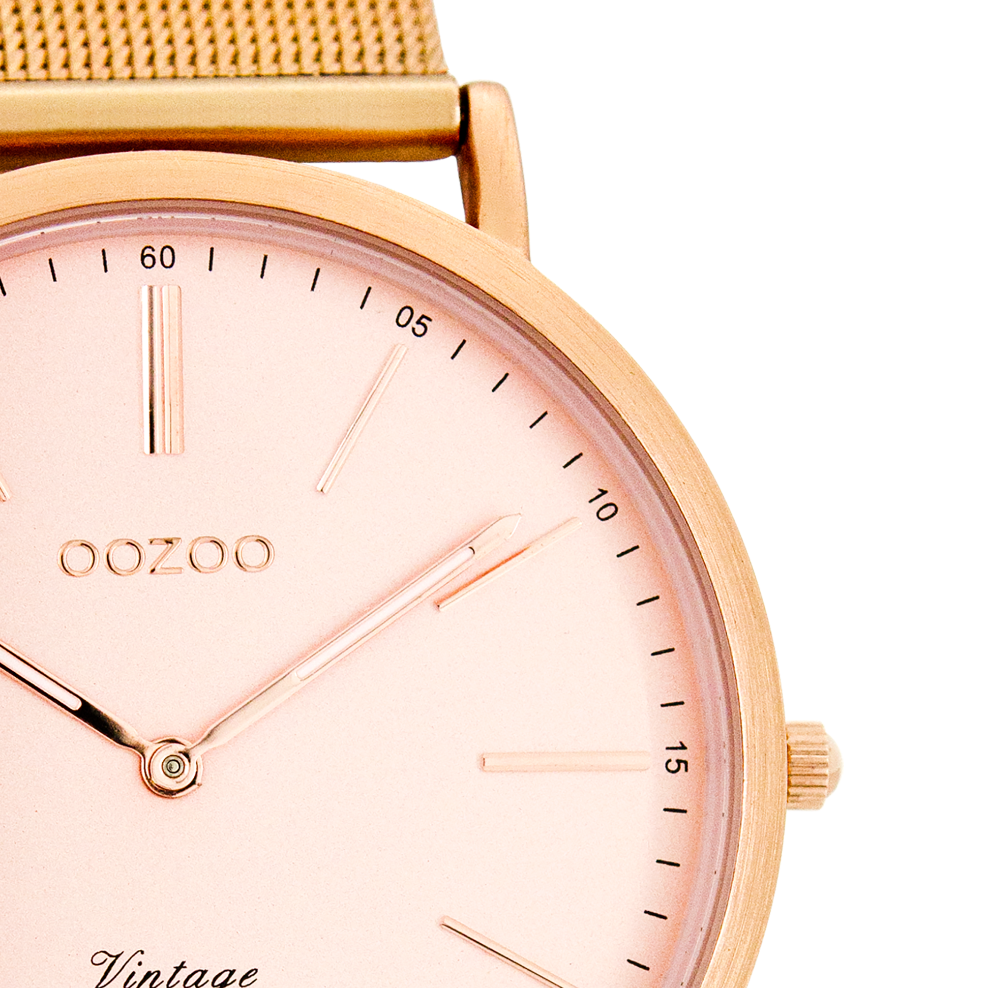Rose gold coloured OOZOO watch with metal mesh bracelet - C7391