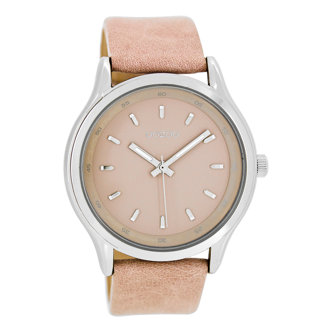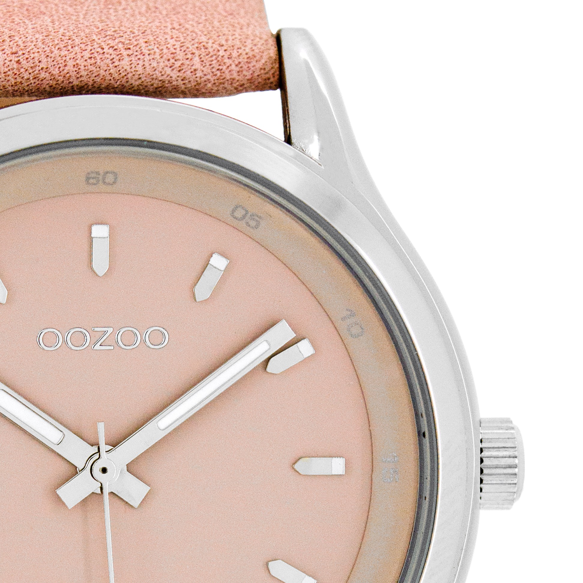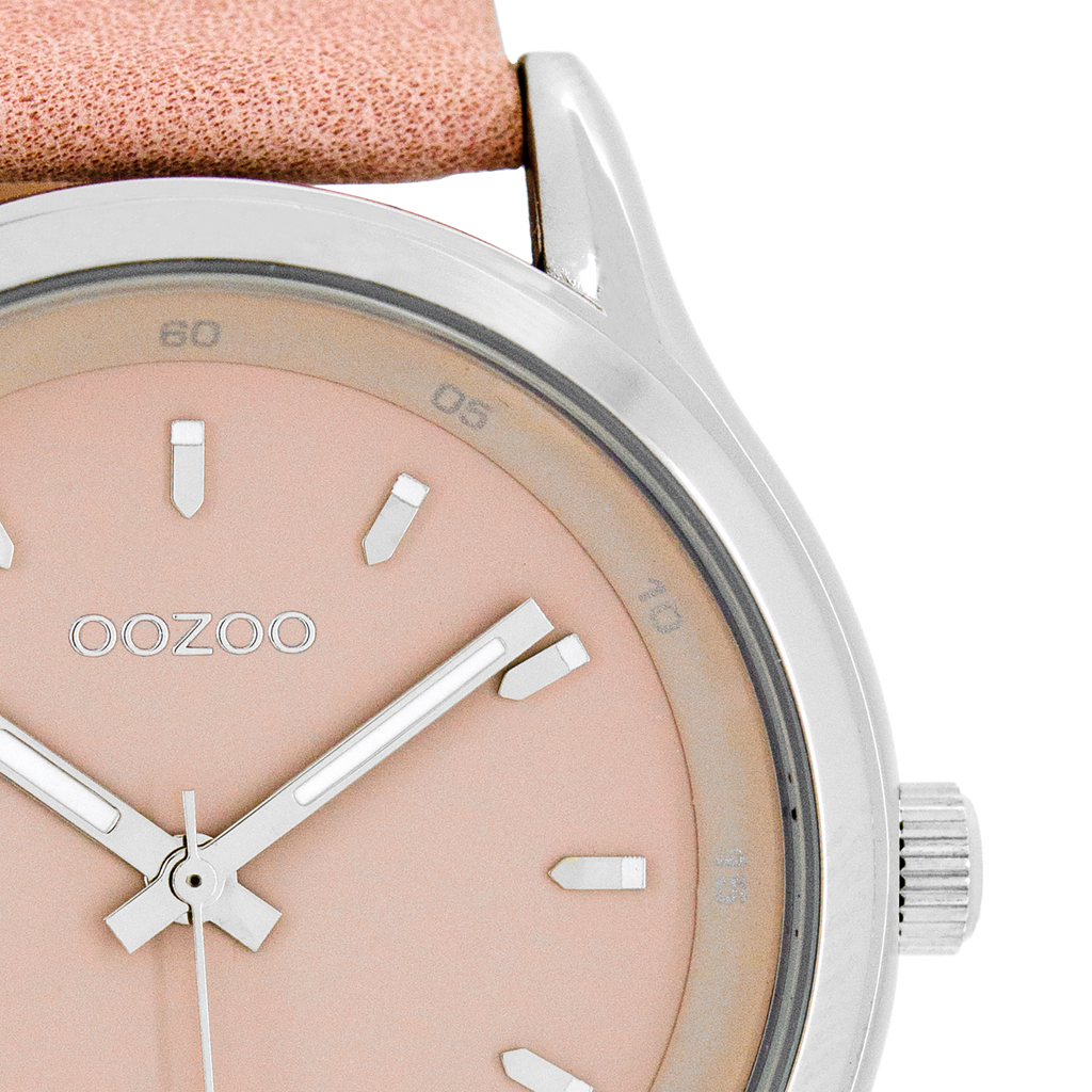 Silver coloured OOZOO watch with pink leather strap - C7436