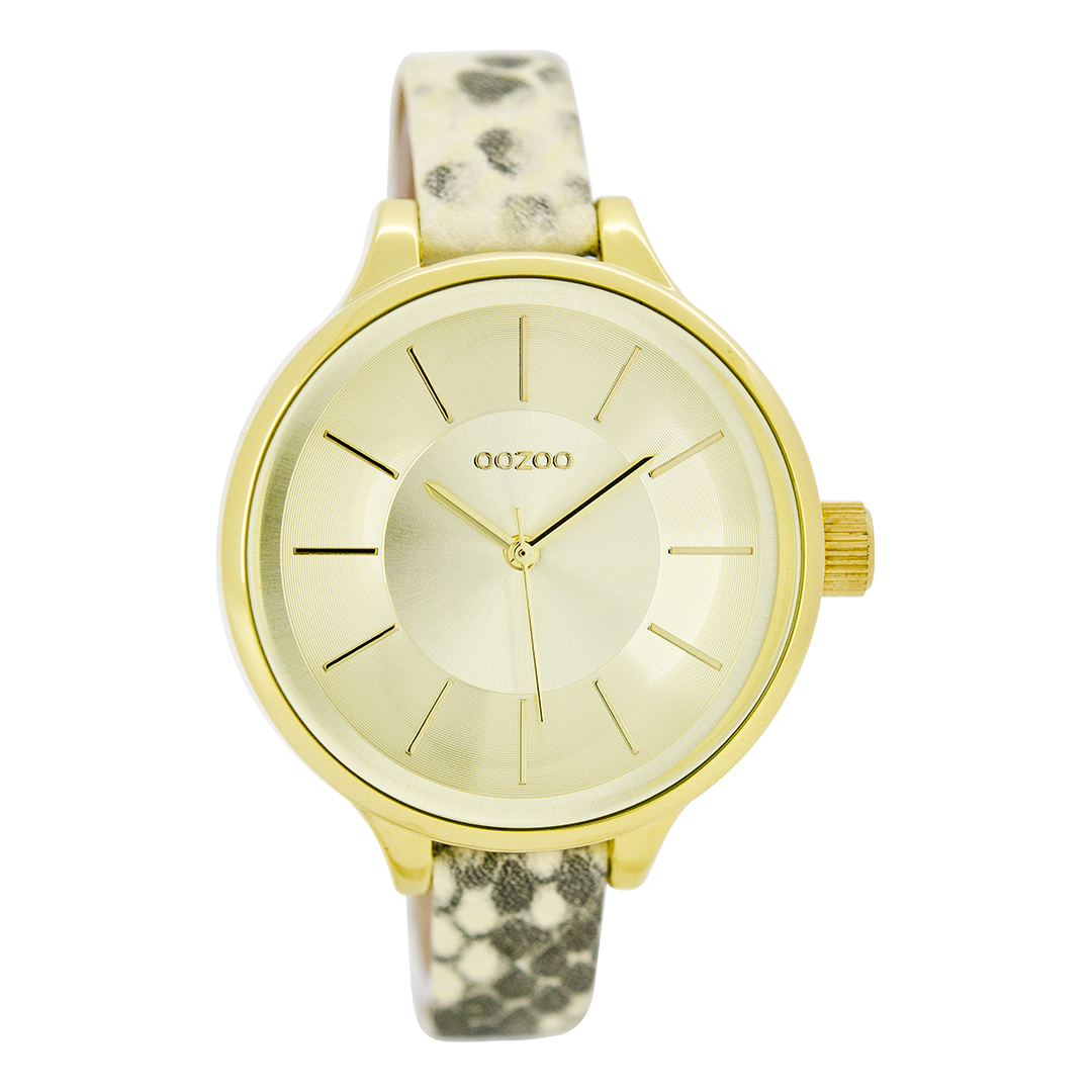 Gold coloured OOZOO watch with grey leather strap - C7545