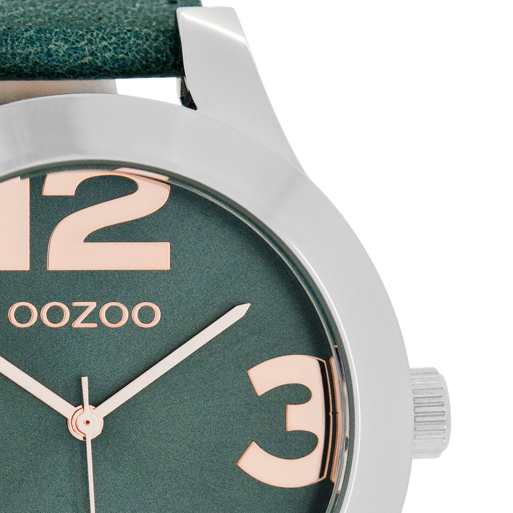 Silver coloured OOZOO watch with aqua green leather strap - C7593