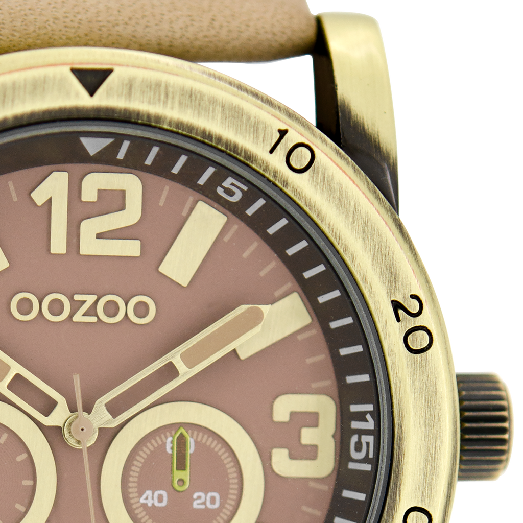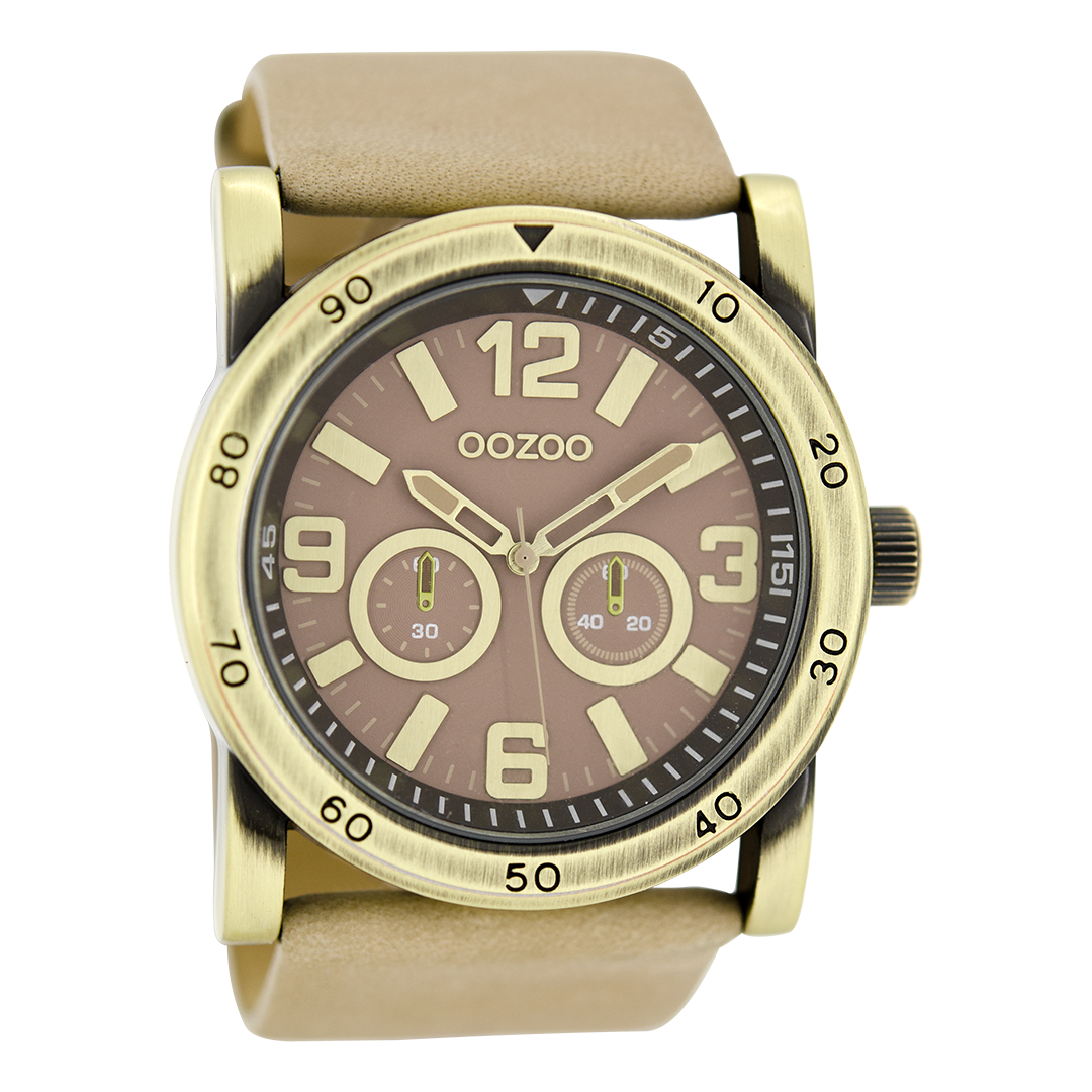 Gold coloured OOZOO watch with sand leather strap - C8305