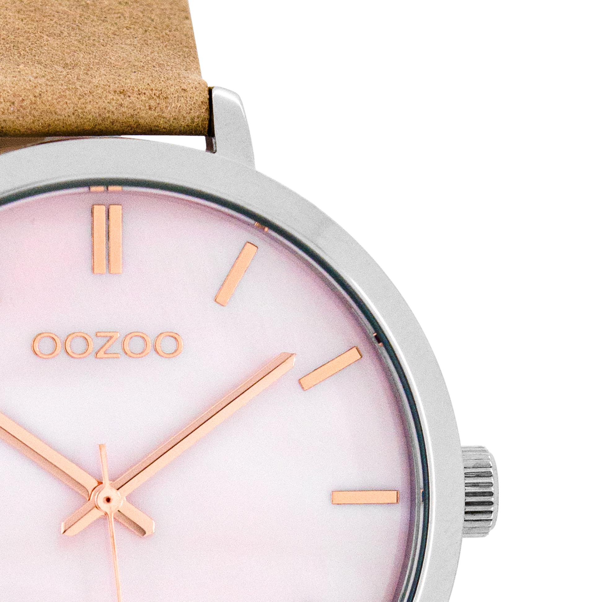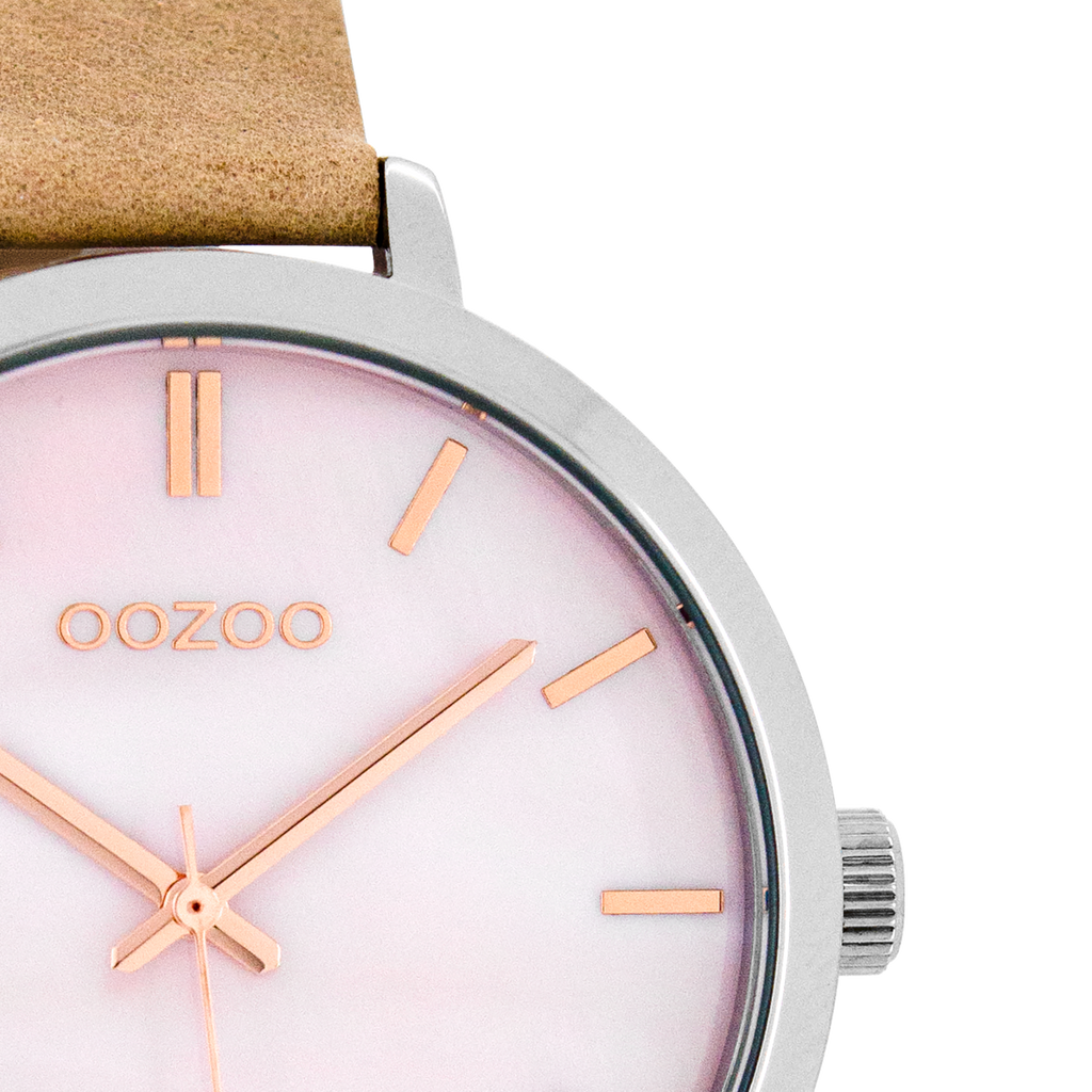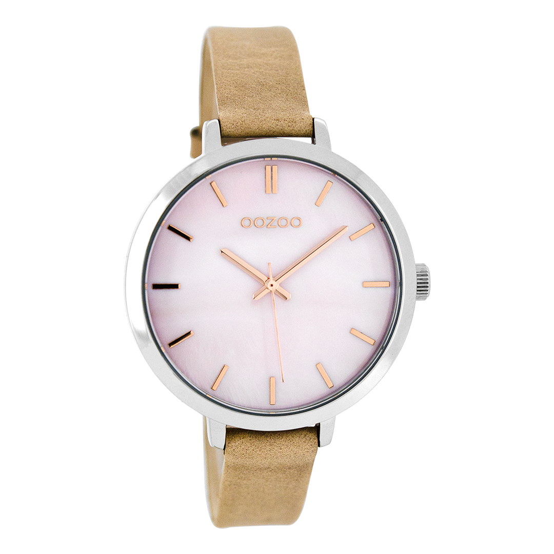Silver coloured OOZOO watch with pink grey leather strap - C8356