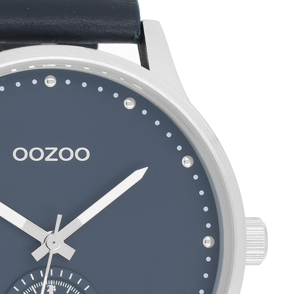 Silver coloured OOZOO watch with dark blue leather strap - C9008